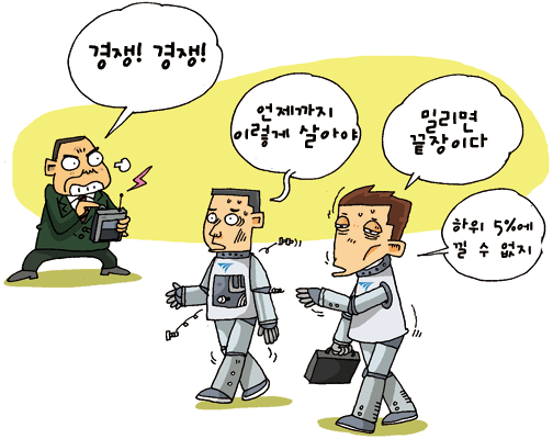 이번에 바뀐 성과상여금 제도는 정성평가가 성과급 평가에 어느 정도 비중을 차지하느냐에 있다. 20%의 비중이 정량평가 순위를 뒤집을 수 있는지 없는지가 관건일 텐데, 아무래도 S는 크게 상관없다고 보면 결국 A, B의 등급을 결정하게 될 가능성이 크지 않을까? 어느 쪽이 더 유리한지는 모르겠다. 어차피 제도라는 게 만들어지고 나면 누군가가 유리해지고 불리해지고가 부득불 생기지 않는가