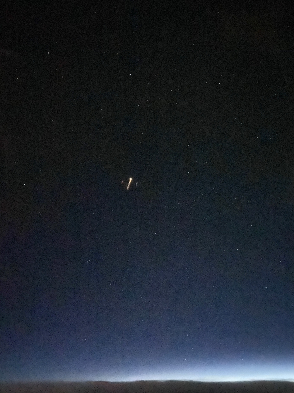 기장님 말씀에 넋을 놓고 밖을 봤다. 별이랑 비행기, 그리고 올라오기 직전의 어스름한 새벽빛까지.