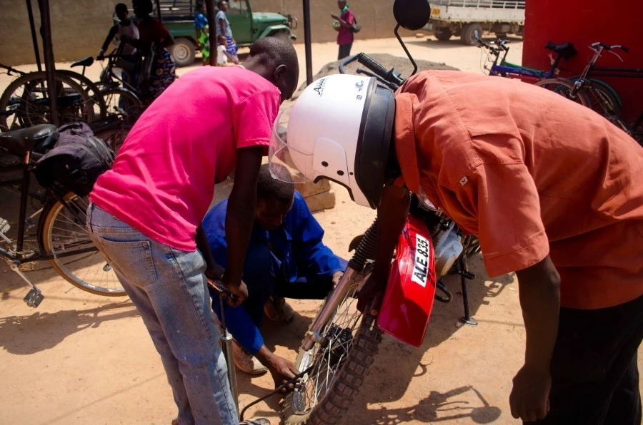 짐바에서 오토바이를 탄다는 건 여간 번거로운 일이 아니었다. 짐바 마을에서 오토바이를 타는 과정은 대충 이렇다. 1. 우선 학교로 가서 키를 받은 다음2. 그 키를 가지고 20분 정도 더 걸어서 도착한 어느 한 가정집에서 오토바이를 꺼낸 뒤3. 그 오토바이를 끌고 10분 정도 걸어 시장에 도착해 바퀴에 바람과 기름을 넣고4. 이제 출발하나 싶을 때 오토바이를 타고 동네 한 바퀴를 돌며 약간의 뽐을 낸다.