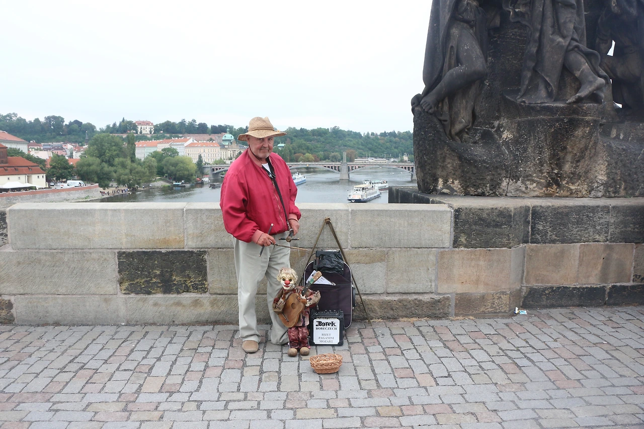 프라하 아름다운 카를교를 지나면서 멋진 조각들과 마리오네트를 공연하는 예술가들을 보면서