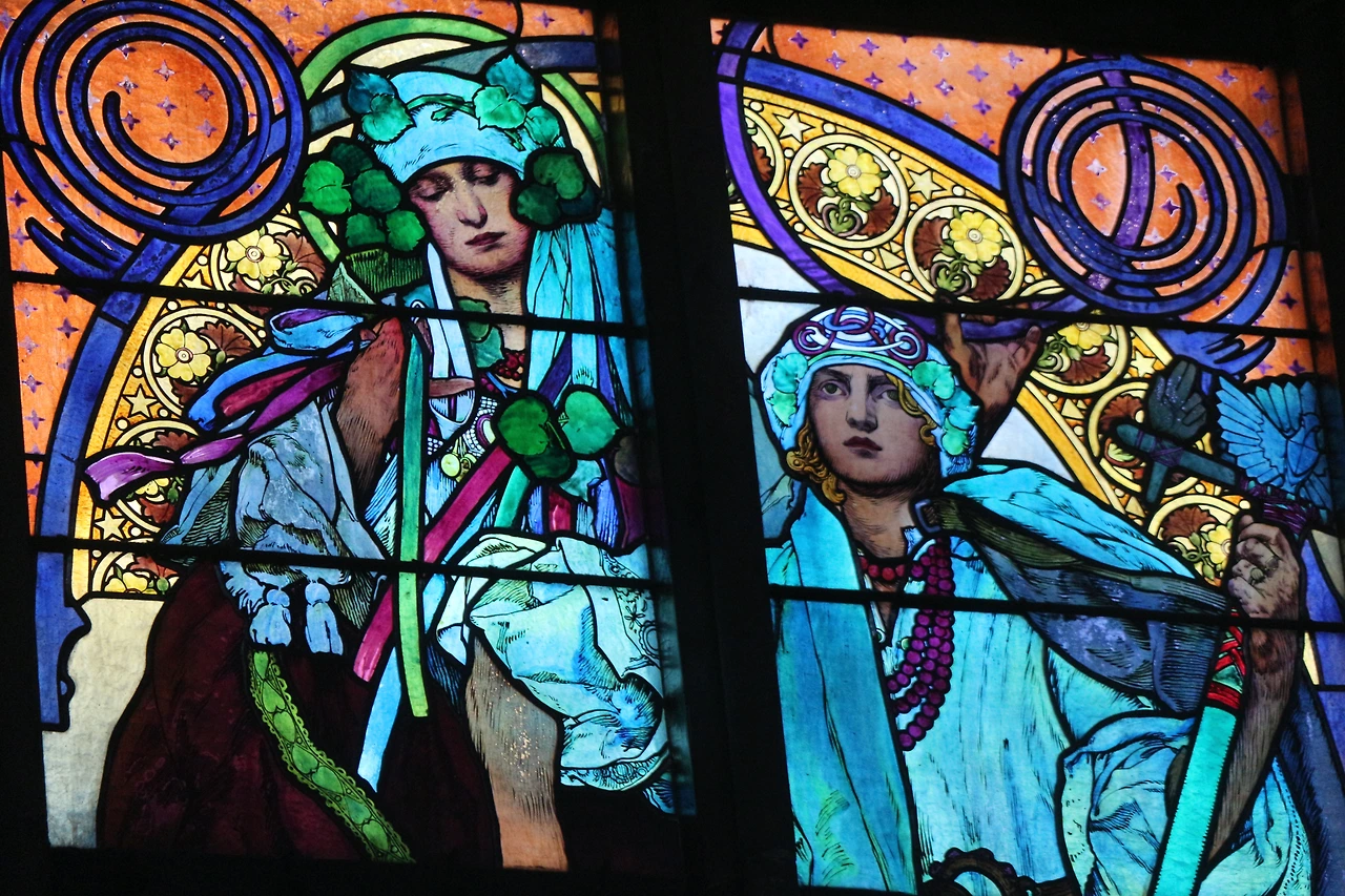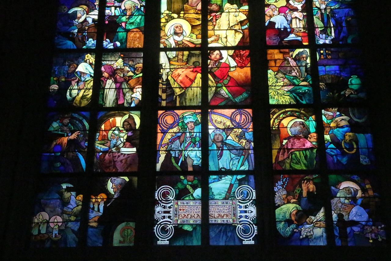 유명한 <무하>의 스테인드 글라스를 보는 것 만으로 만족...