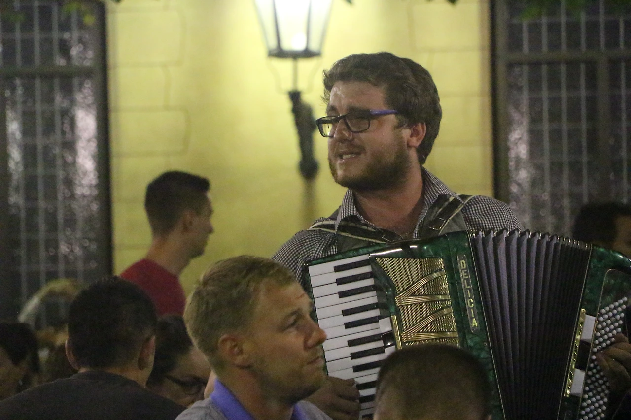 대형 맥주가게에 꽉 찬 불편한 좌석과 아코디언으로 노래 불러주는 맥줏집 분위기에 더워 죽겠는데도 즐거웠다.