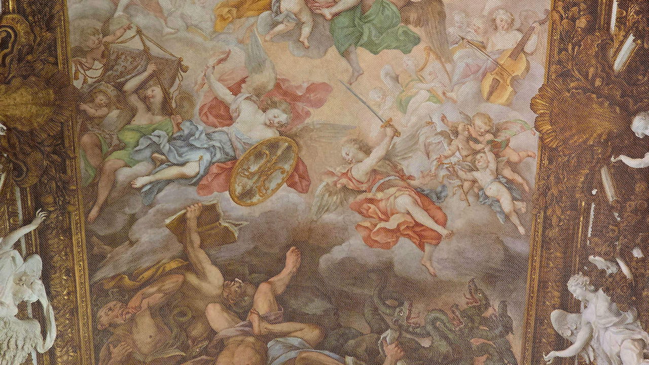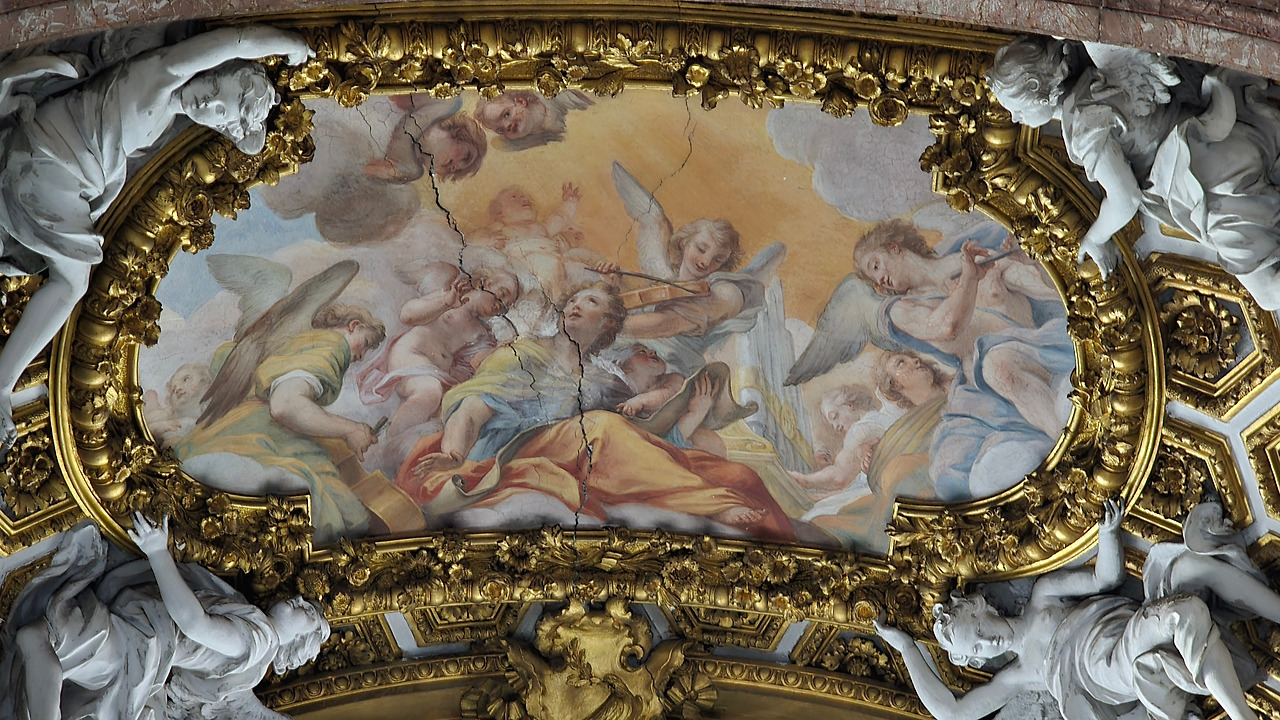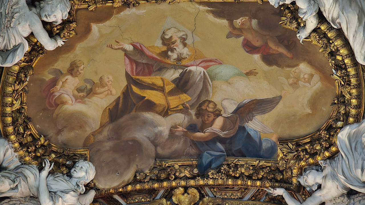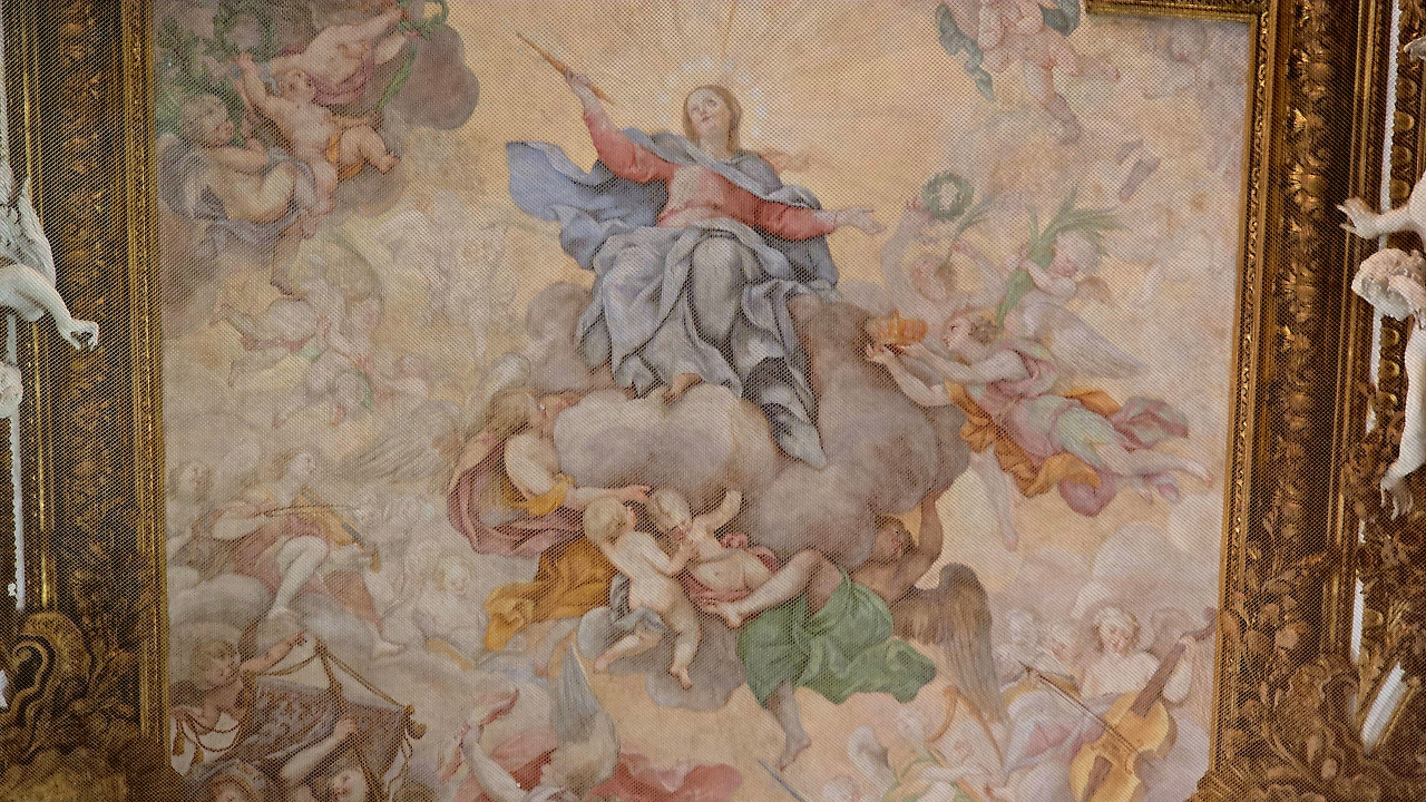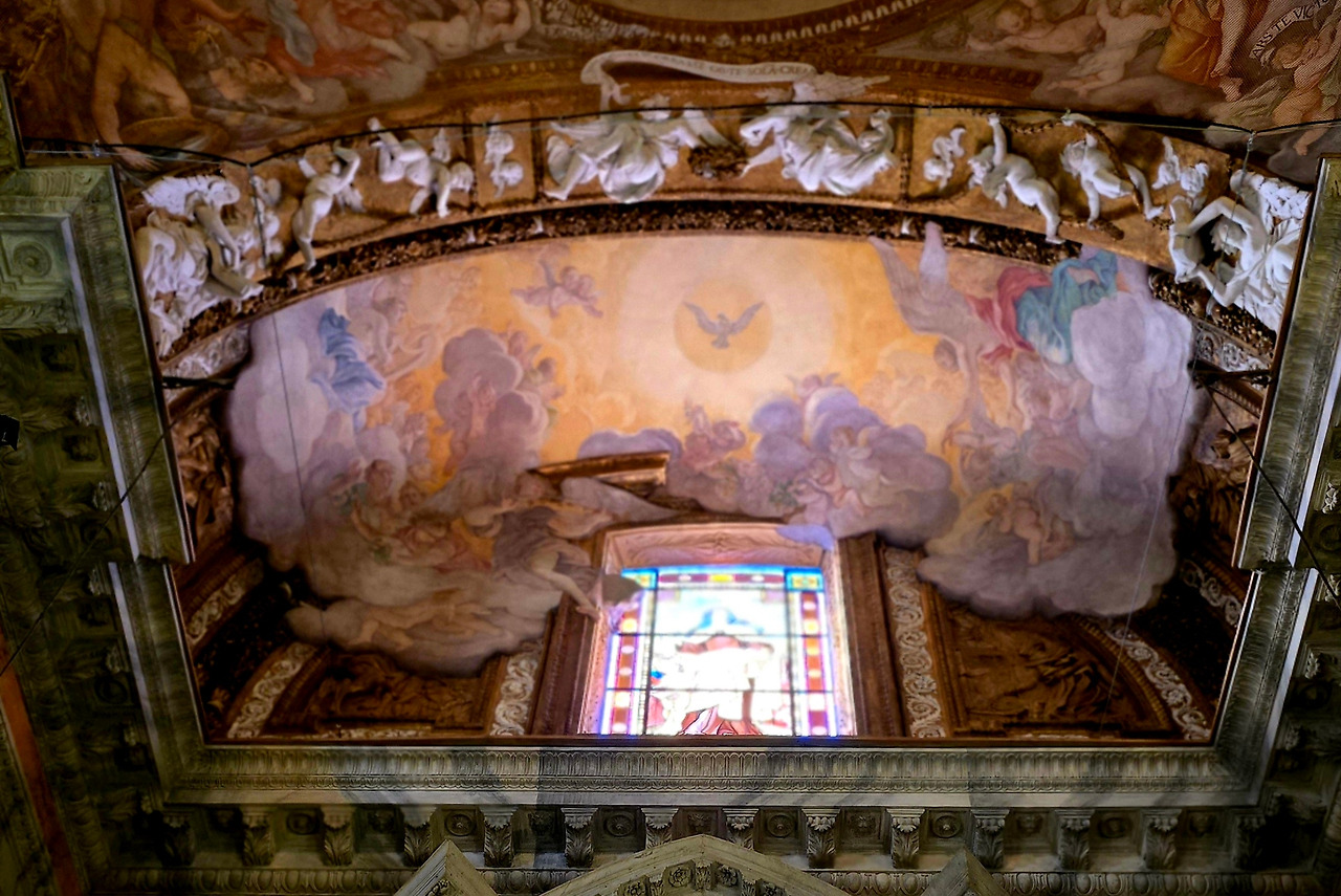 천장화가 정말 화려한데 보수 중이라 뚜렷이 보이지 않아서 아쉬웠다.