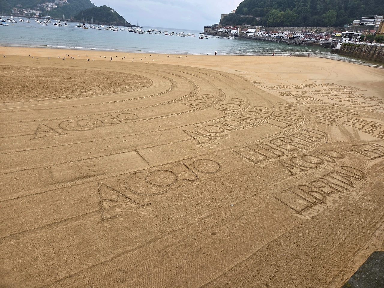 해안가에 가니 모래 위에 글씨가 빼곡했다. 어떤 말인지 찾아보니 자유, 환대, 평화 등이 쓰여 있었다. 바스크 지방은 스페인 내에서도 독립 의지가 강한 지역인데 그 영향이 아닐까 싶었다.