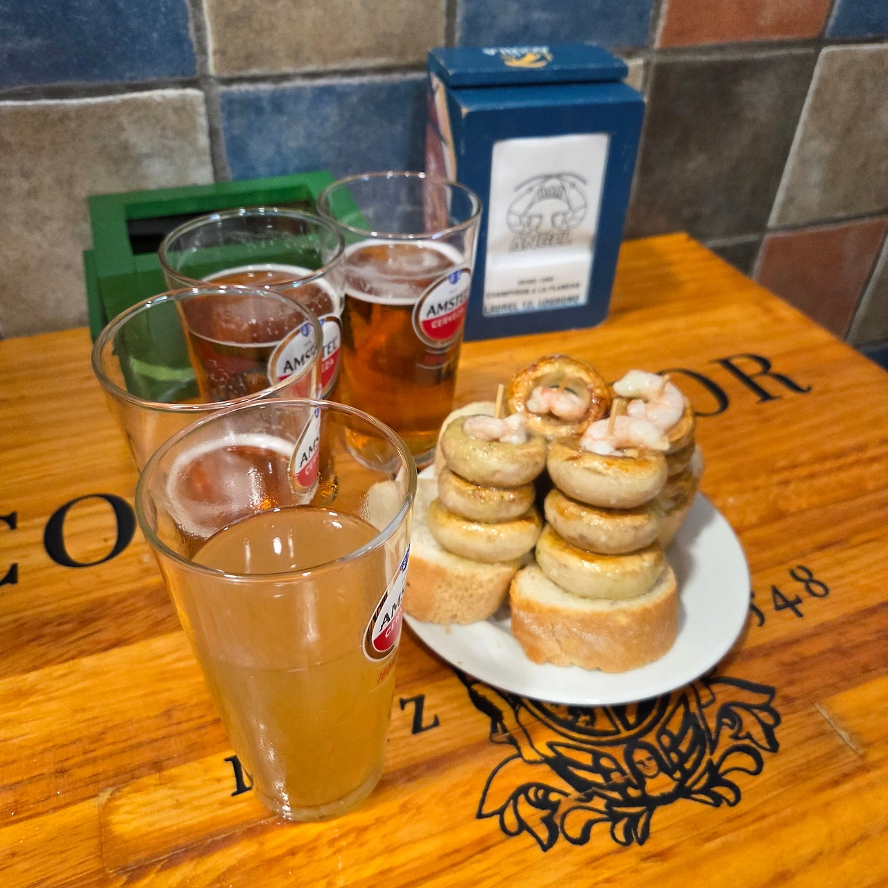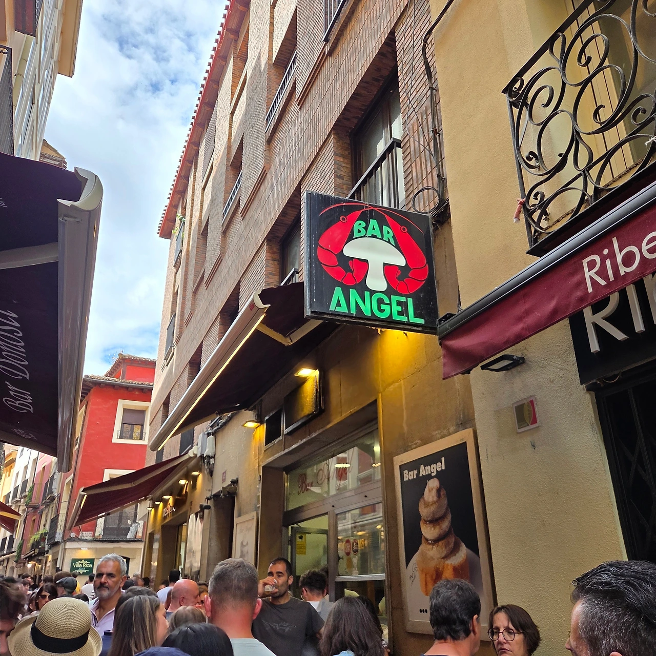 와인으로 유명한 리오하의 주도인 만큼 와인에 곁들여 먹을 수 있는 타파스도 발달했다. 타파스 집이 밀집해 있는 라우렐 거리에서는 타파스 투어가 가능하다. 그중 가장 인기가 많은 집은 양송이 버섯(샹피뇽Champinones)으로 유명한 바 앙헬Bar Angel이다. 사람이 몰릴 때 주문은 거의 전쟁터와 마찬가지다. 직원이 올 때까지 시간을 가지고 기다리는데 직원과 끊임없이 눈을 맞춰야 주문을 받는다. 술 4잔과 샹피뇽을 시키면 또 먹을 자리를 찾아 매의 눈으로 가게를 훑어야 한다. 약 30분 만에 샹피뇽을 먹을 수 있었는데 올리브유, 마늘만으로도 이렇게 맛있는 요리를 만들 수 있다는 사실을 처음 알았다.