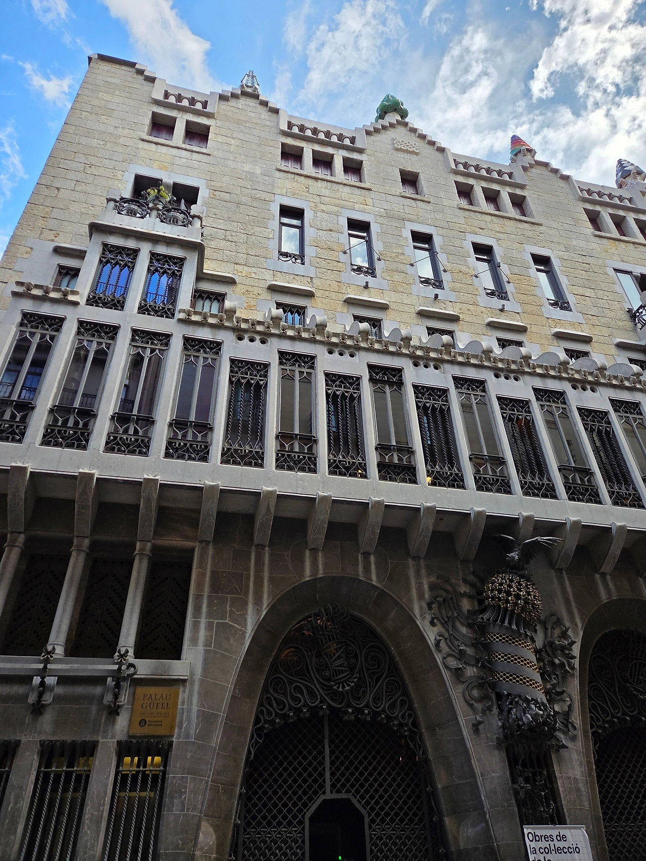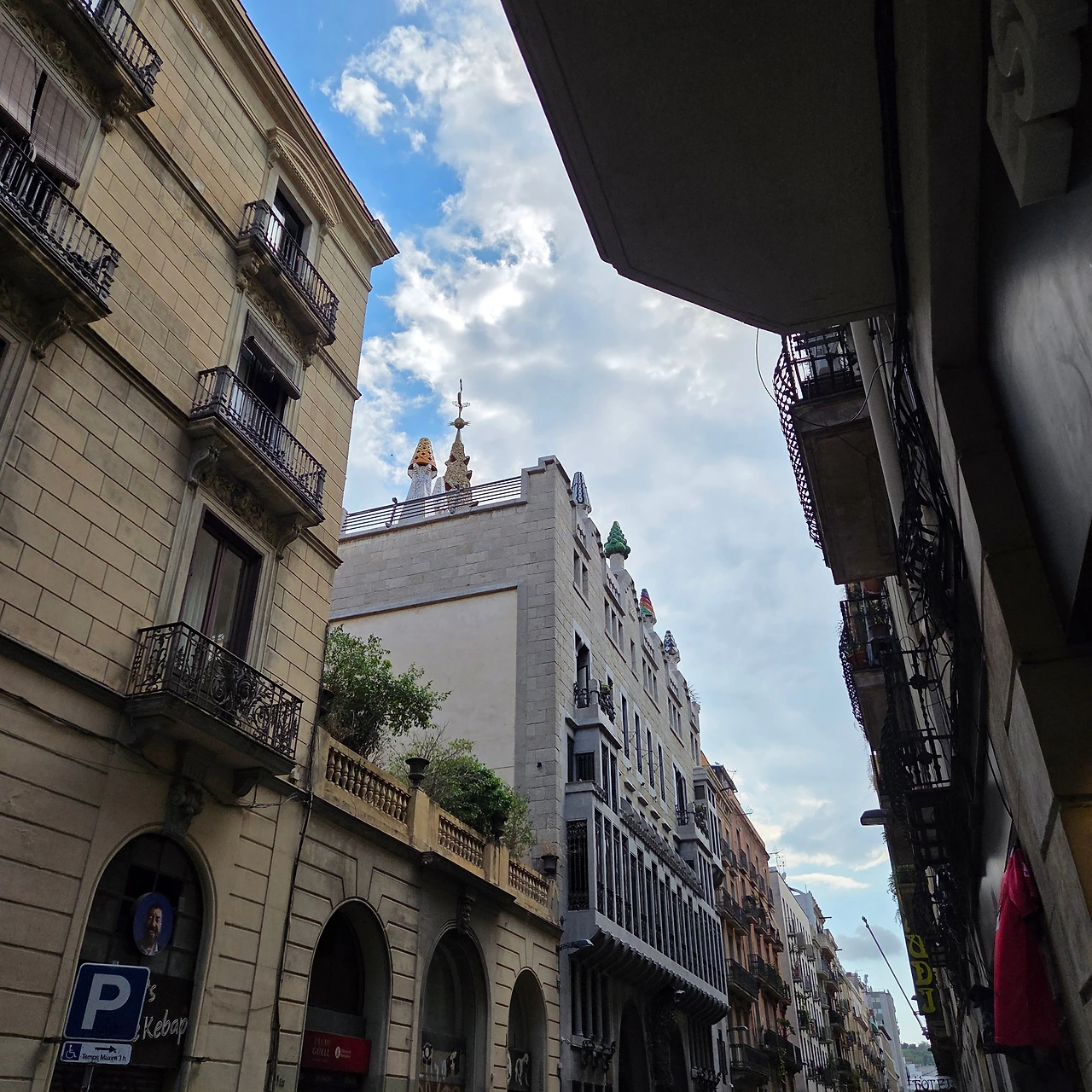 사그라다 파밀리아가 보이는 식당에서 간단하게 점심을 먹고 가우디 투어를 마무리하러 람블라스 거리로 갔다. 람블라스 거리에는 가우디의 생전 후원자였던 구엘의 저택이 있다. 구엘 저택은 여전히 그 후손들이 살고 있는데 지붕에 나무 모양의 굴뚝이 인상적이었다. 정문, 창문에 있는 철제 장식은 가우디가 이 저택을 얼마나 신경 써서 지었는지를 보여줬다.