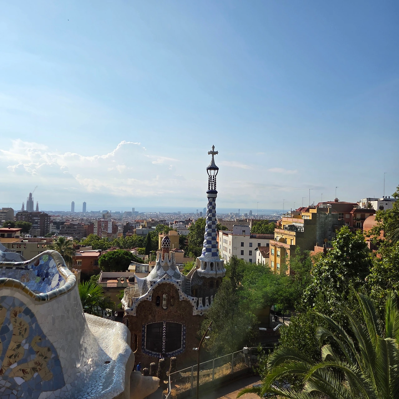 도마뱀을 시작으로 시장 용도로 설계된 하이포스타일 룸, 산책로인 포르티코를 거쳐 세계에서 가장 긴 벤치인 물결무늬 벤치로 향했다. 역광이었음에도 벤치에서 바라보는 바르셀로나 시내와 지중해 풍경은 가슴을 탁 트이게 했다.