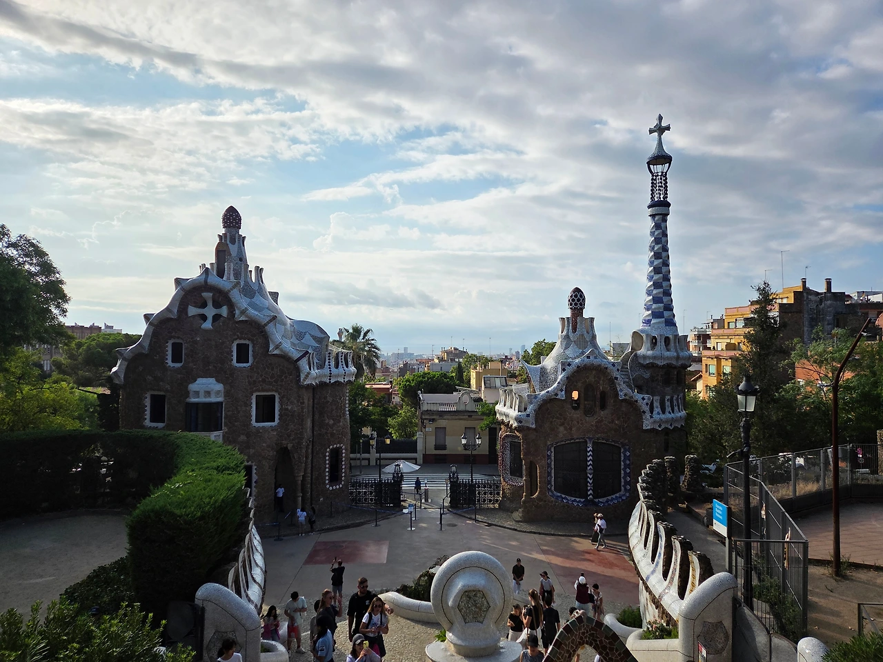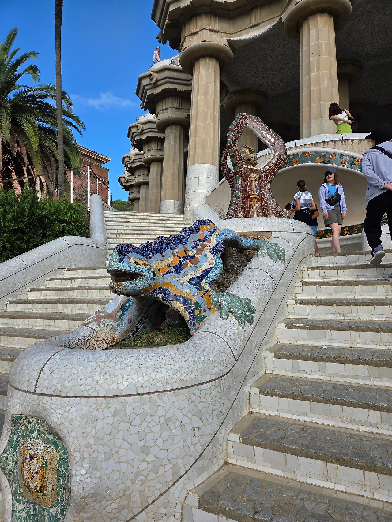'우리끼리 가우디 투어' 2일차. 더운 날씨 때문에 구엘공원을 오전에 먼저 둘러보기로 했다. 9시 15분으로 예약을 하고 택시를 잡아 구엘공원으로 향했다. 제미나이의 도움을 받아 구엘 공원 관람 동선을 확인했으나 사람이 없을 때 사진을 먼저 찍기 위해서 그 유명한 도마뱀으로 갔다. 도마뱀 조형물은 구엘 공원 배수 시스템의 일부로 빗물 등이 마지막으로 나오는 곳이다. 배수 시스템을 하나의 예술 작품으로 만들었다는 점에서 가우디가 구엘 공원에 얼마나 공을 들였는지 알 수 있다.