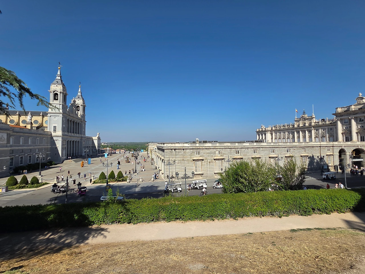 추로스와 10년 만의 재회를 뒤로하고 왕궁으로 갔다. 시간 관계상 왕궁 안으로 들어가지는 않고 겉에서만 구경했다. 1734년에 지어진 왕궁은 다른 서유럽 국가들의 궁전들과 다르게 좌우대칭이 아니었다. 찾아보니 예산 문제와 지형적 한계 때문에 왼쪽은 날개를 지을 수 없었다고 한다. 우리나라와 비교해 보면 경복궁과 같은 중심 궁전인데 300년 가까운 시간 동안 날개를 보충해서 짓지 않은 점이 특이했다. 매주 수, 토요일에 위병 교대식이 열린다고 하는데 볼 수 없어서 아쉬웠다.