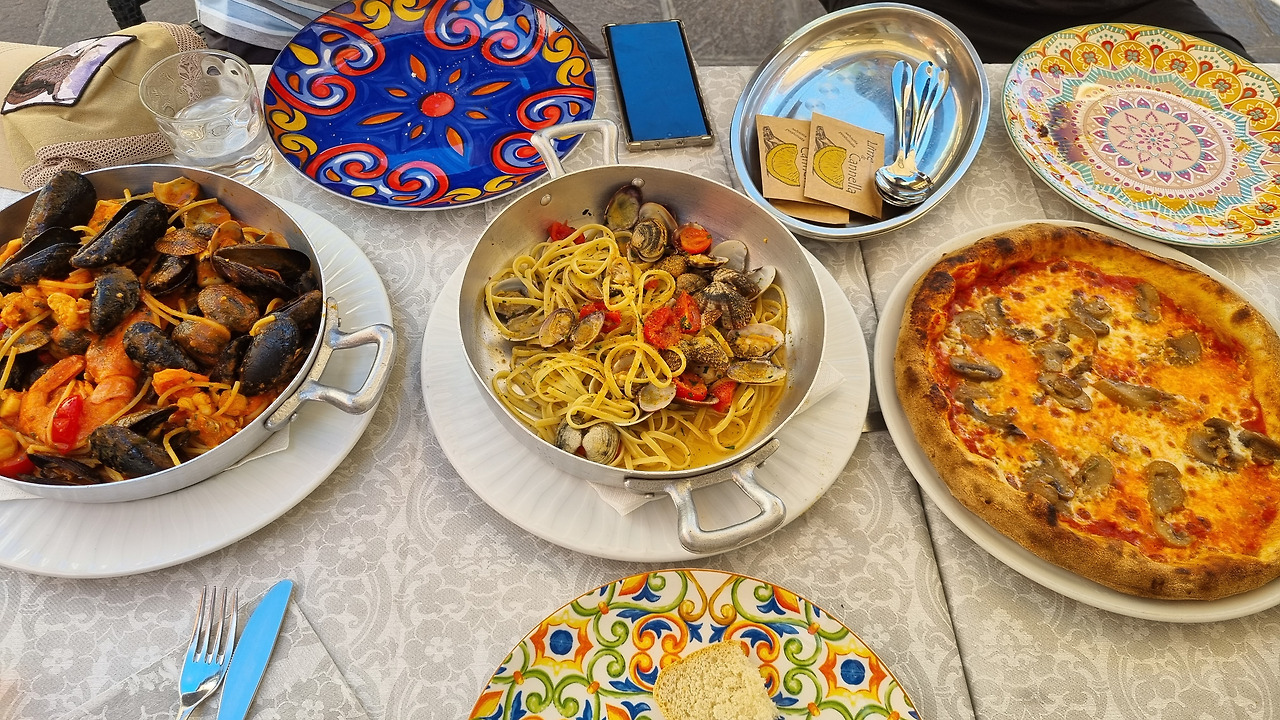아침 일찍 밀라노에 도착해서 정신없이 가르다 호수에 도착한 우리는 점심을 먹기로 했다. 호수의 일부가 보이는 식당에서 피자와 파스타를 주문했다. 파스타를 한 입 먹으니 '이것이 진정한 이탈리아 파스타구나'라는 생각이 들었다. 봉골레에서는 조개의 비린맛이 하나도 느껴지지 않았고 면은 퍼지지도 덜 익지도 않은 적당한 수준이었다. 피자는 토마토소스, 치즈, 버섯만이 올라가 있었지만 맛이 훌륭했다. 먹으면 버섯의 향이 퍼지면서 치즈의 고소함이 느껴졌다. 평소에 양식을 잘 드시는 엄마는 물론 한식파인 아부지까지 맛있게 드셨다.