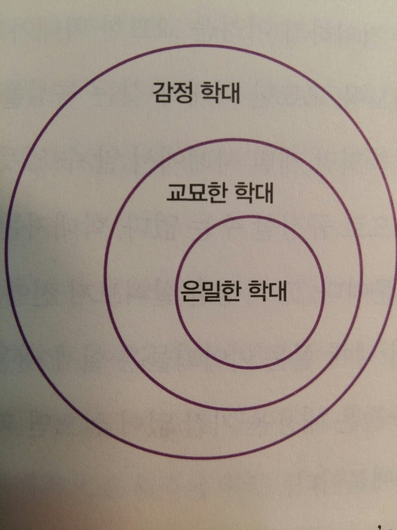 나는 사람을 우습게 만드는 말, 사람을 휘두르려는 의도들, 강압적인 태도, 계속되는 부당한 대우, 직접적으로 드러나지는 않는 수동 공격 행동, 언어폭력, 점진적으로 증가하는 학대를 모두 포함하는 학대의 정의를 내리고 싶다.(31쪽)