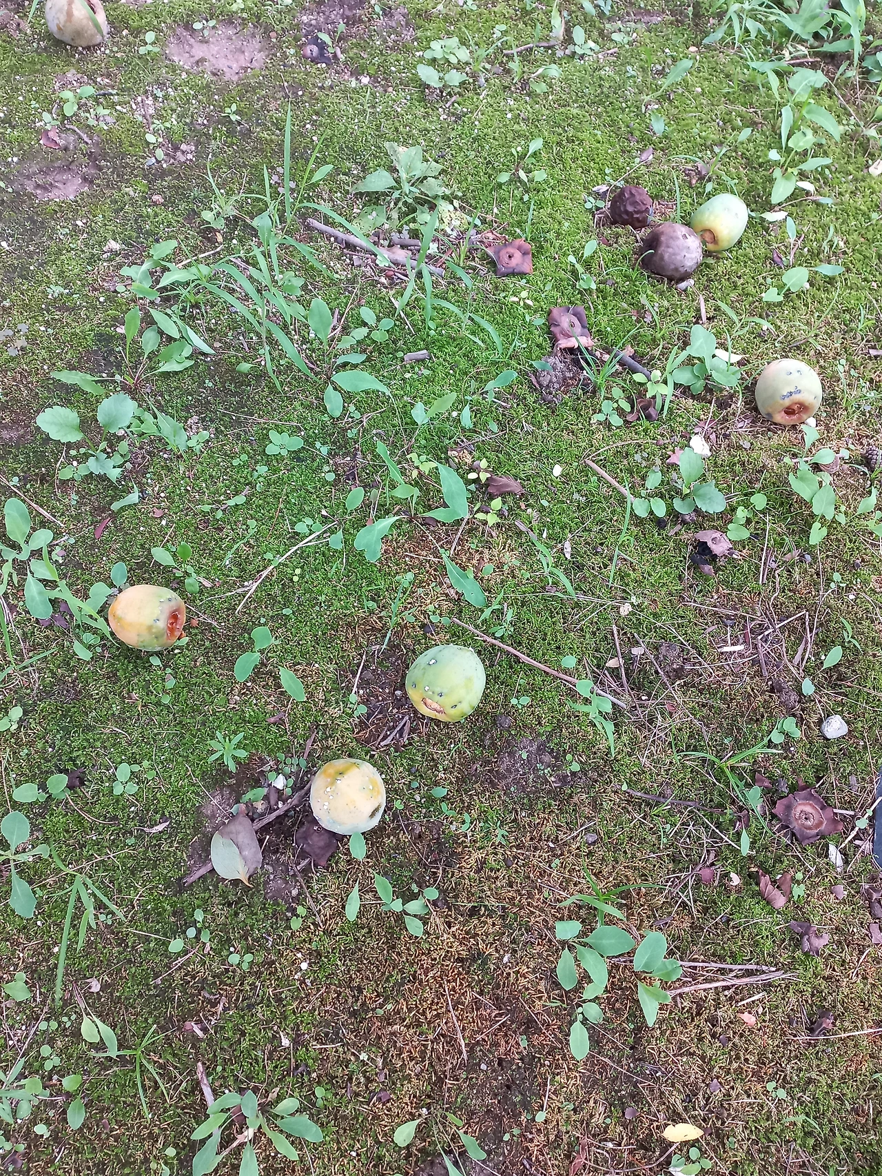 아직 익지 못한 감들이 많이 떨어져 있다