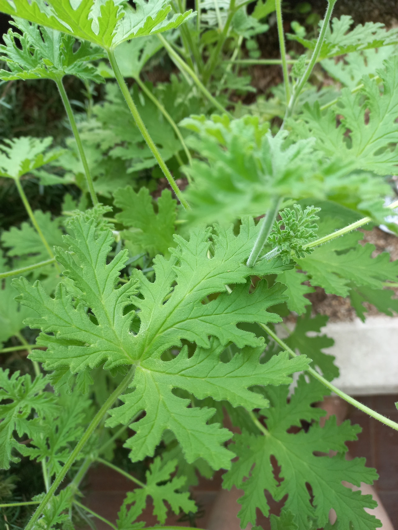 바람에 로즈 제라늄 초록 이파리가
