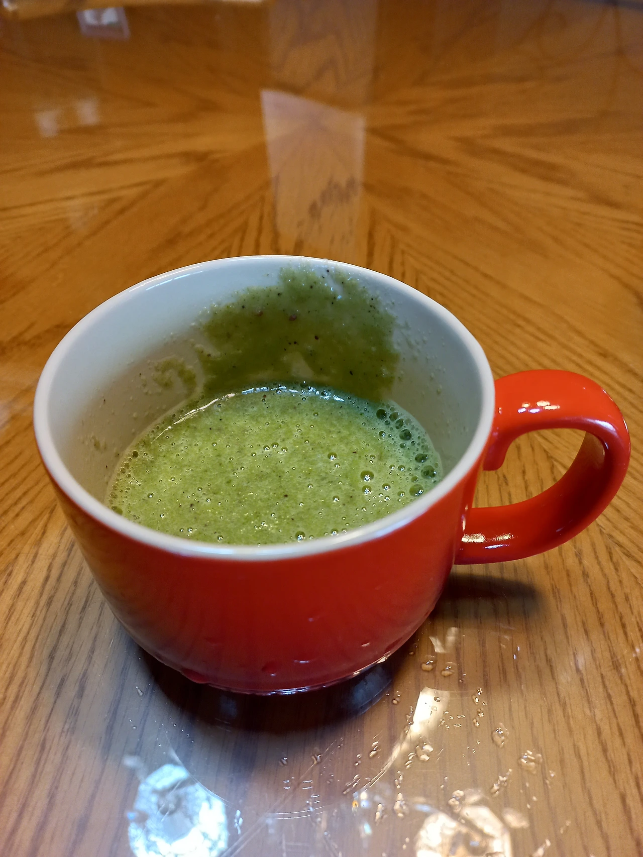 사과 케일 주스를 마시다가