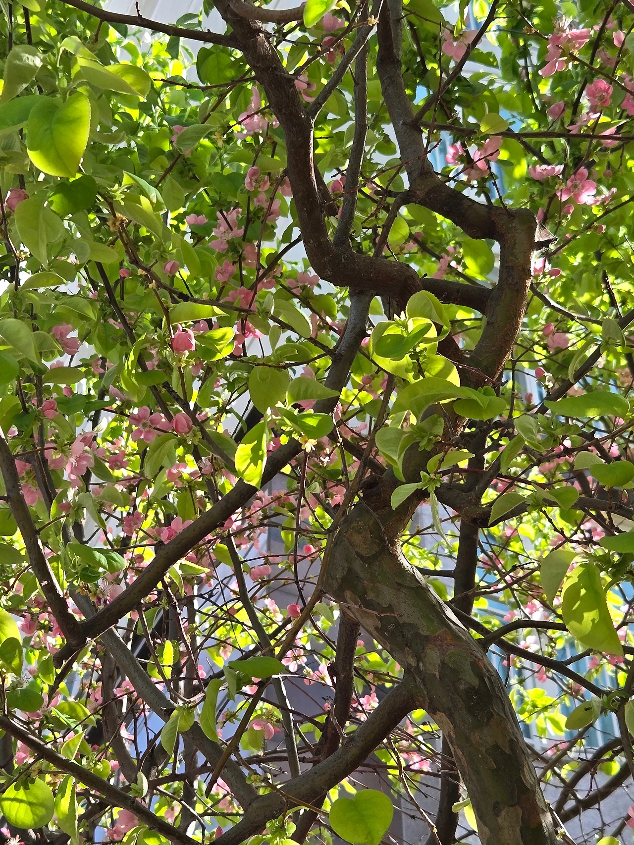 모과나무에 어느새 꽃이 만발해 있다.