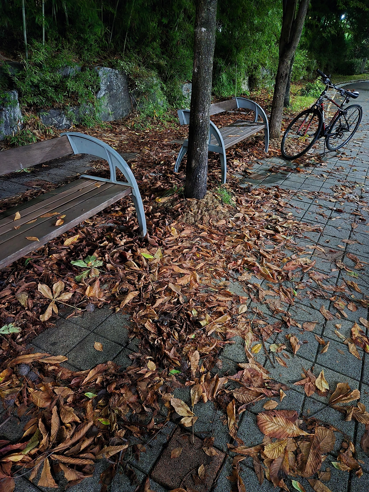 비 온 후 잎들이 떨어졌다