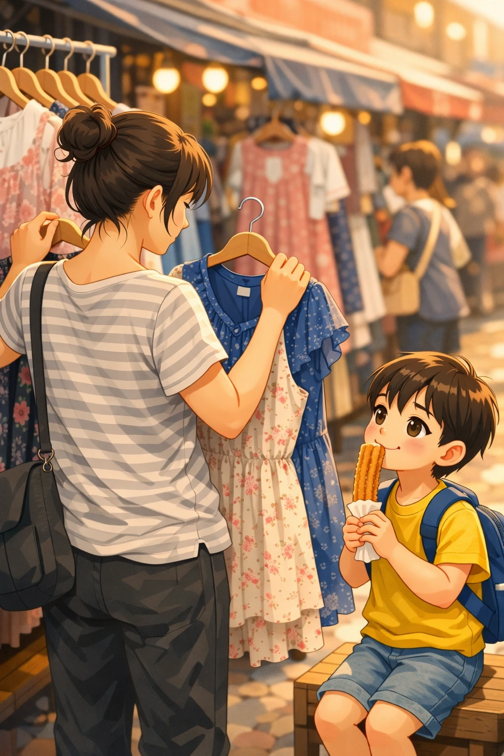 아들의 손에는 갓 튀겨낸 따뜻한 츄러스 하나가 쥐어져 있었다.