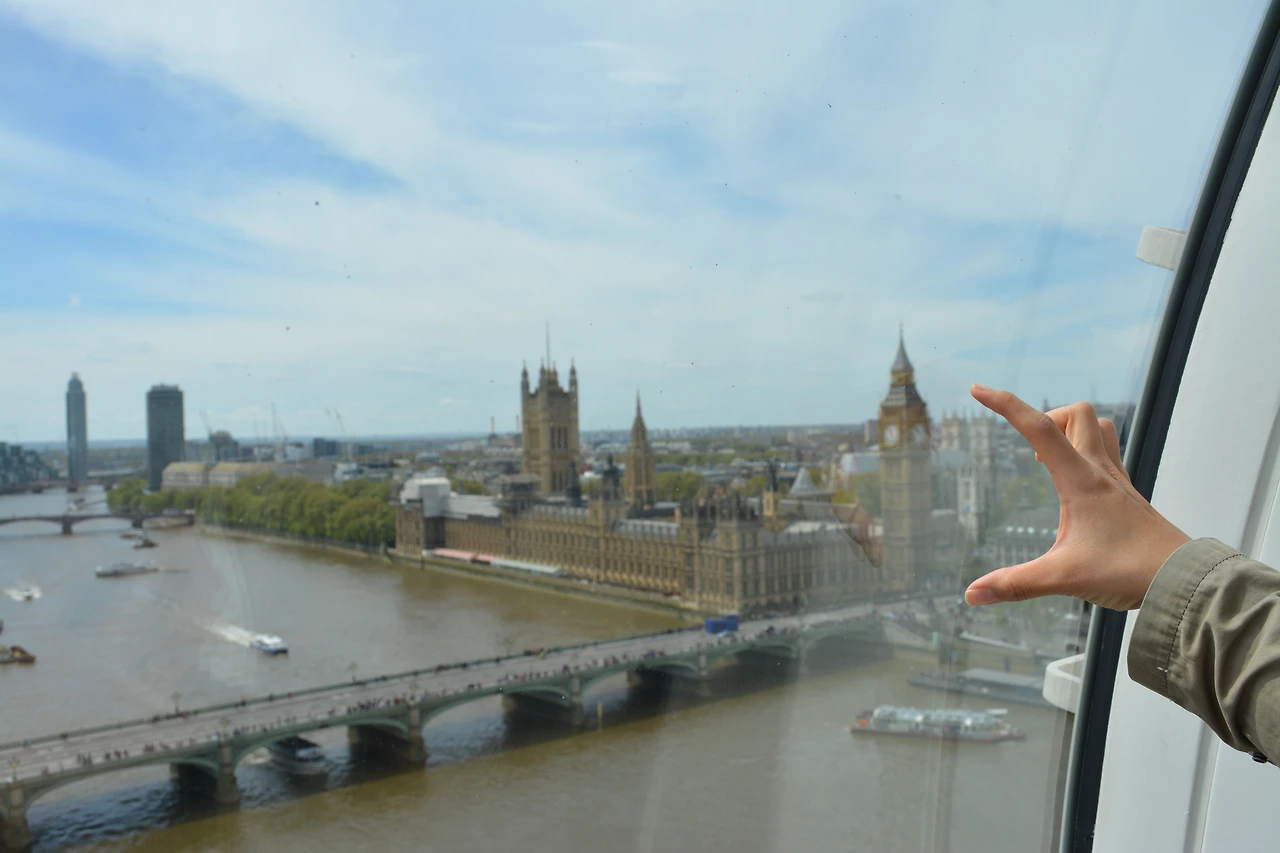 오전 일찍 런던 아이로 가 입장권을 티켓팅하고 제법 차례를 기다린 후 드디어 탑승을 했다. 천천히 돌아가는 크고 투명한 관람차에서 빅벤과 템스강을 내려다보는데, 어마어마하게 큰 런던 관광 엽서를 보는 것 같았다. 같이 탄 각국의 관광객들은 저마다 사진을 찍으며 추억을 남겼다. 남편이 나와 율이를 카메라로 찍어주고 있는데 옆에서 사진을 찍던 인도계 남자가 우리 셋의 가족사진을 찍어주겠다고 했다. 친절한 마음씨 덕분에 런던 여행에서 가장 마음에 드는 가족사진을 얻을 수 있었다. 그리고는 한 바퀴 돌아 내려올 때까지 저기가 우리 숙소 쪽인가 봐! 저기가 세인트 폴 대성당인가 봐! 하며 이쪽저쪽을 둘러보며 마치 런던 지리를 다 알기라도 하는 듯 호들갑을 떨었다.