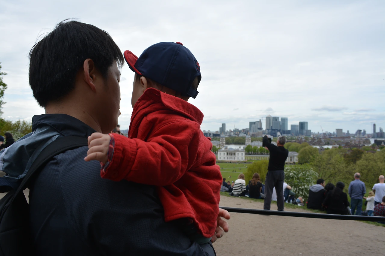 하지만 이 시간이 길게 가지는 않았다. 율이는 어느 정도 간식을 먹고 나자 많이 버텼다는 듯 다시 안으라는 신호를 보내왔다. 그때부터는 남편이 목마를 하고 그리니치 천문대까지 다시 오르기 시작했다. 올라가는 길에 마주 내려오고 있던 하산객들이 목마 한 아기를 보고 "Hello!!" 하고 귀엽다는 듯 인사해 주었다. 율이는 간식에 배도 불렀겠다, 무슨 상황인지도 모르면서 신이나 컨디션 최고였다.