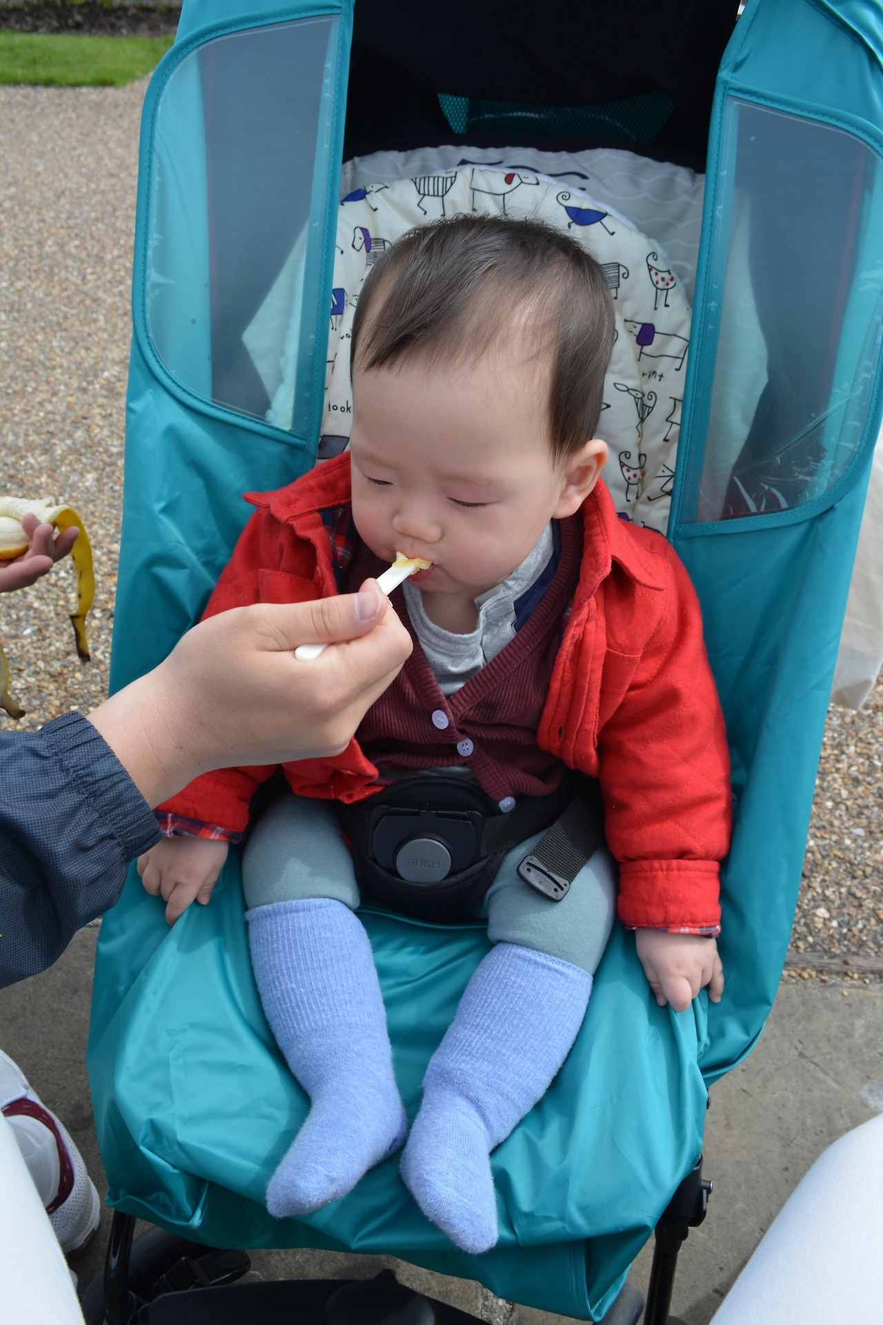 작전 개시. 율이에게 배낭 속에 챙겨 온 바나나를 보여주며 슬며시 "이거 먹을래? 우리 유모차에 앉아볼까?" 하면서 유모차에 앉혔다. 그런데 이게 웬일이야! 울고불고 앉지 않겠다고 하던 때와는 다르게 순순히 유모차에 앉아 바나나를 기다리는 것이었다. 유럽에 와서 처음 유모차에 앉았을 뿐인데, 대단한 일이라도 되는 듯 기뻐서 소리를 지를뻔했다. 남편에게 만족의 눈빛을 한번 보낸 후 이 분위기가 깨질세라 바나나도 주고 물도 주고 과자도 주며 시간을 끌었다. 덕분에 우리 부부도 잠시나마 편하게 쉴 수 있는 호사를 누렸다.