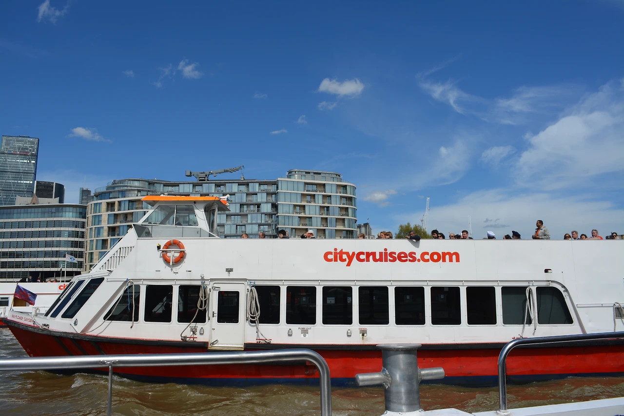 런던 아이에서 내려온 후에 근처 일식당에서 간단하게 점심을 먹었다. 그리고 남편이 꼭 가보고 싶어 했던 그리니치 천문대에 가기 위해 시티 크루즈 선착장을 찾았다. 선착장은 런던 아이 탑승구 근처에 있어서 쉽게 찾을 수 있었다. 우리가 탄 유람선은 템스강을 따라 동쪽에 있는 그리니치 천문대를 향했다. 강을 따라가다 보니 테이트 모던, 런던탑, 타워 브리지 등 런던의 유명한 관광지들이 보였다. '시티 크루즈'라는 유람선의 이름이 참 잘 어울린다는 생각이 들었다. 오전보다 날씨가 더 청명해져, 어디든 카메라만 갖다 대면 그림이었다. 유람선 가장 뒷자리에 앉아 살살 불어오는 바람을 맞으며 그리니치 선착장에 도착했다.
