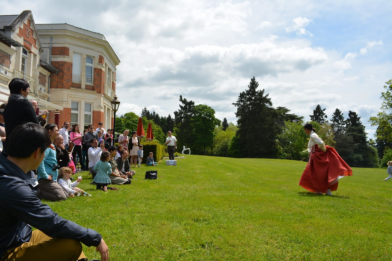 식사 전, Y의 전통무를 보여주는 시간이 있었다. Y는 현대무용을 전공했지만 이 날 참석하는 제프의 친지들과 친구들을 위해 특별히 우리 전통춤을 보여주는 자리를 마련한 것이었다. 별다른 무대 장치 없이, 초록 잔디 위에서 한복을 입고 부채를 들고 춤추는 모습이 하늘하늘 거리는 한 마리의 나비 같았다. 프랑스의 작은 도시에서 우리 가락과 우리 춤, 우리 옷의 조화를 보게 되다니! 무언가 감격스러운 기분이 들기도 했다. 사람들은 자유롭게 둘러앉아 관람하고 있으면서도, 한국의 아름다움에 시선을 떼지 못하는 것이 느껴졌다. 나도 여러 번 친구의 공연을 본 적이 있었지만, 이런 이국적인 환경에서는 처음이어서인지 더욱 집중해서 보게 되었다.