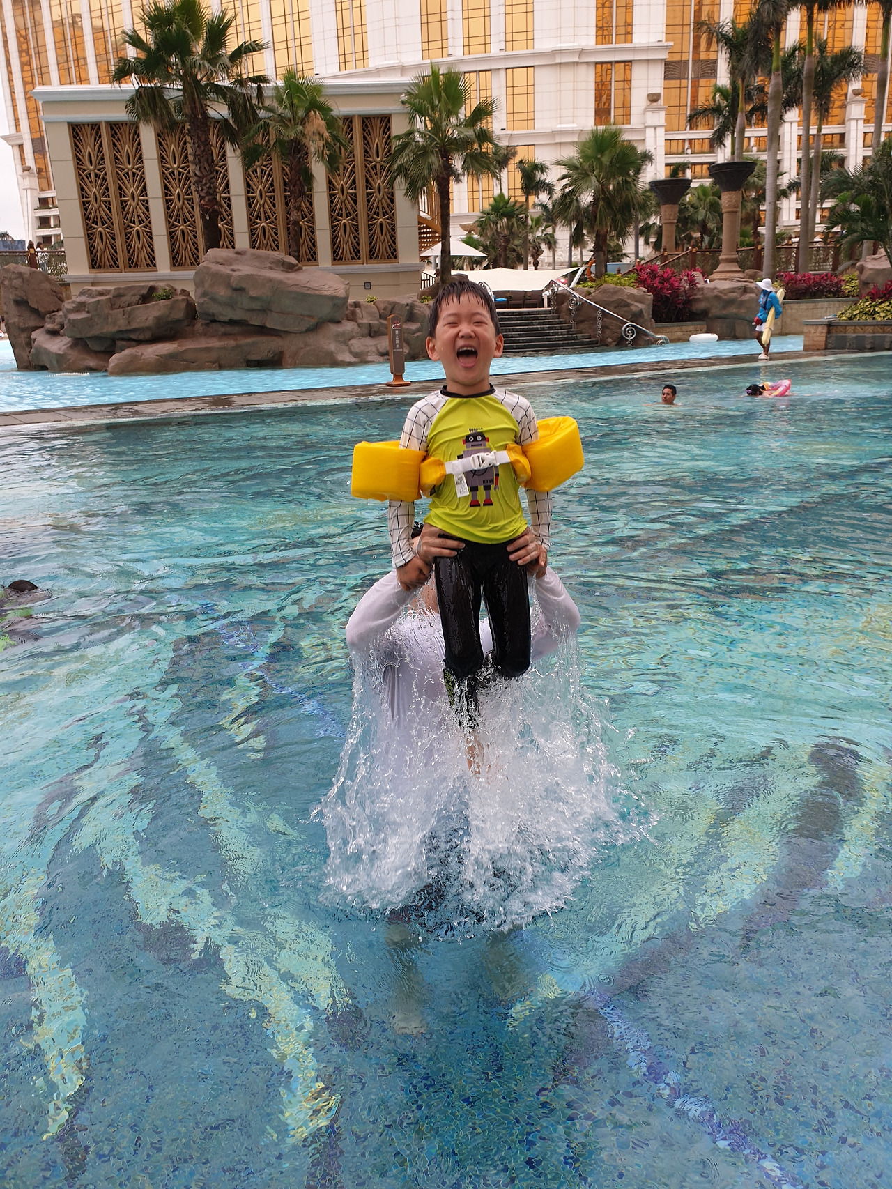 아침을 먹자마자 후다닥 준비를 끝내고 향한 곳은 호텔 내 수영장이었다. 갤럭시 호텔 계열의 호텔을 숙소로 정한 것은 80프로 이상이 바로 수영장 때문이었다. 많은 블로그와 카페를 통해, 이 곳의 수영장 규모가 크고 시설이 잘 갖추어져 있다는 글을 확인하고 예약했기에 기대가 컸다.