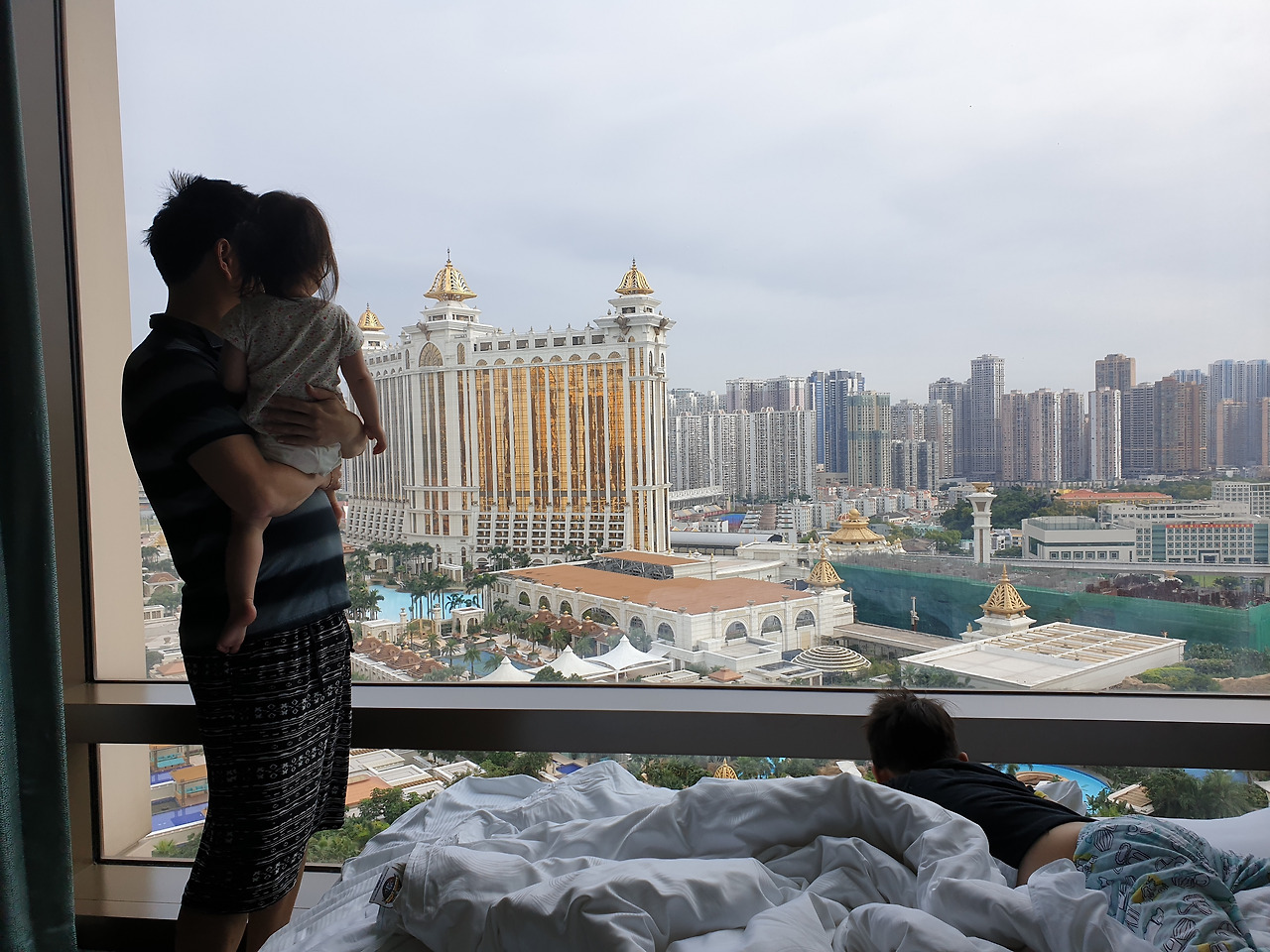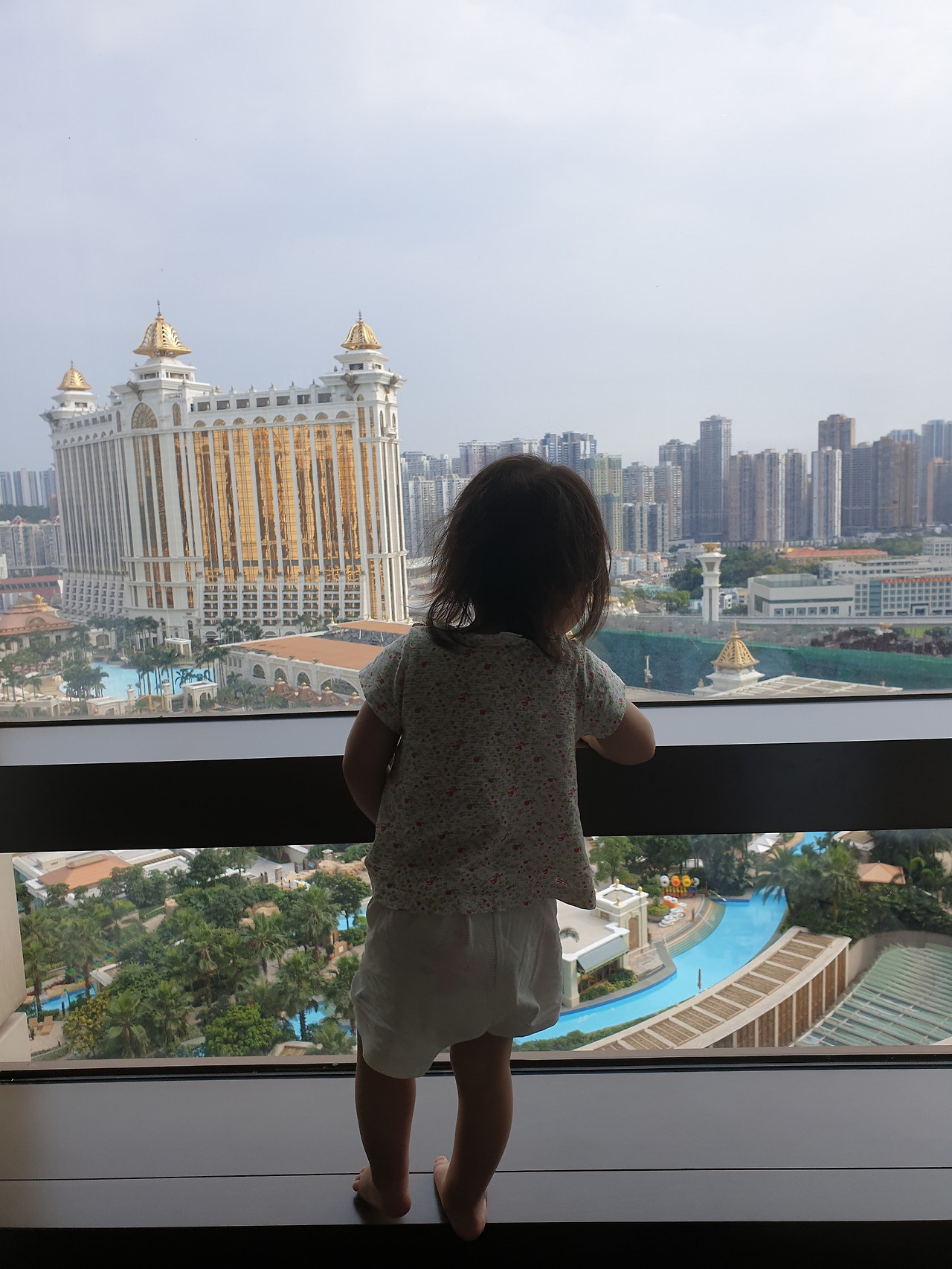 사실, 마카오의 본모습은 해가 지고 호텔들이 라이트업이 된 이후부터였다. 대부분의 호텔들은 중국 사람들이 좋아한다는 골드 베이스 조명을 하고 있지만, 때에 따라 붉은색으로 또 푸른색으로 조명을 다양하게 바꾸어가며 여행자의 시선을 끌었다. 우리는 아이들이 어리다 보니 매일같이 저녁 식사만 끝내면 바로 호텔로 돌아와 쉬었다. 그래서 아쉬운 마음을 달래기 위해, 매일 밤 침대 위에 옹기종기 모여 창문 너머로 야경을 감상했다.
