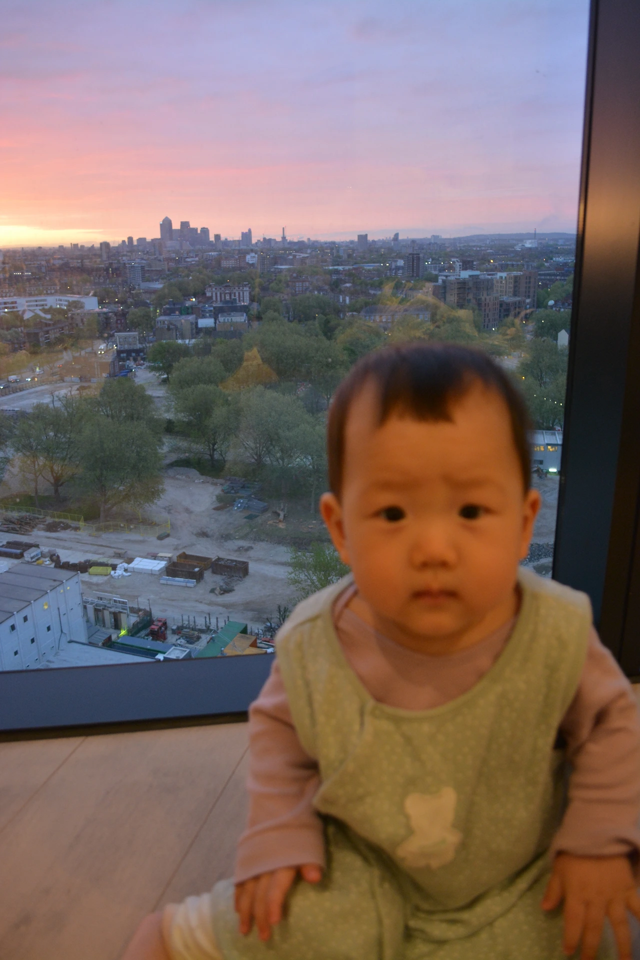 캐리어에 유모차에 아기까지 있어 숙소까지는 택시로 이동했다. 숙소는 호텔보다는 집의 느낌이 나는 곳을 원했기에 에어비앤비에서 정했다. 지하철 Elephant & Castle역 바로 앞에 있는 아파트의 17층이었는데, 런던의 풍경이 큰 창으로 내려다보이는 원룸 형식의 스튜디오였다. 한창 기어 다니고 잡고 서는 아이를 위해 카펫 바닥이 아닌 곳, 이유식을 만들어야 하는 경우를 대비해 키친이 있는 곳, 혹시 모를 아이 옷 빨래를 위해 세탁기가 구비된 곳을 고려해 골랐다. 넓지는 않았지만 우리 셋이 지내기에는 부족함이 없었다.