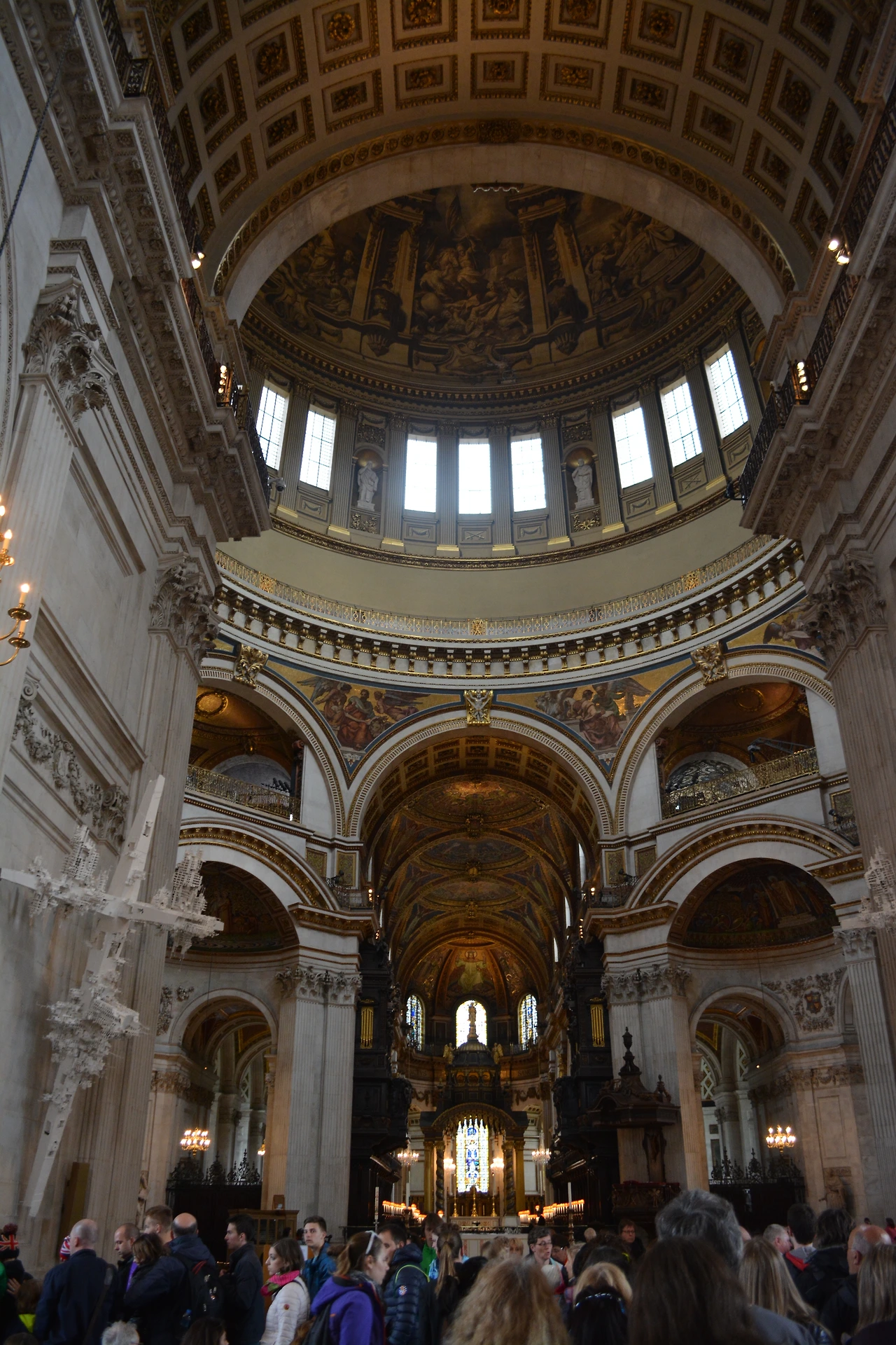 테이트 모던에서 나와 밀레니엄 브리지를 건너서 조금 더 걷다 보면 세인트 폴 대성당이 나온다. 멀리서부터 성당의 지붕이 보였기 때문에 가까이 다가가며 성당의 크기를 가늠하는 재미가 있었다. 오늘도 어김없이 아빠에게 안기려 하지 않는 율을 거의 하루 종일 안고 다녔더니 다리와 허리가 아팠다. 그래서 성당 입구에 도착하자마자 계단에 철퍼덕하고 앉아 쉬었다. 계단에 앉아서 휴대폰으로 사진도 찍고 사람 구경도 하고 있는데, 우리 바로 뒤편에 앉은 사람 중에 자꾸 눈이 마주치는 남자가 한 명 있었다. 갈색 피부에 까만 머리카락의 중동계로 보이는 남자였는데, '왜 이렇게 쳐다보지' 하면서도 대수롭지 않게 생각했다. 휴식을 끝내고는 세인트 폴 대성당의 아름다운 내부를 한 바퀴 둘러보았다. 웅장한 건물의 크기와 천장의 화려한 그림, 높다랗게 뻗은 기둥들까지, 이 모든 것의 조화 속에서 뿜어져 나오는 묵직한 분위기가 압도하는 곳이었다. 성당 돔 천장까지 남편이 걸어 올라갔다 오는 동안, 나는 율과 성당 안에 비치된 의자에 앉아 조용히 이 곳의 공기를 느꼈다.