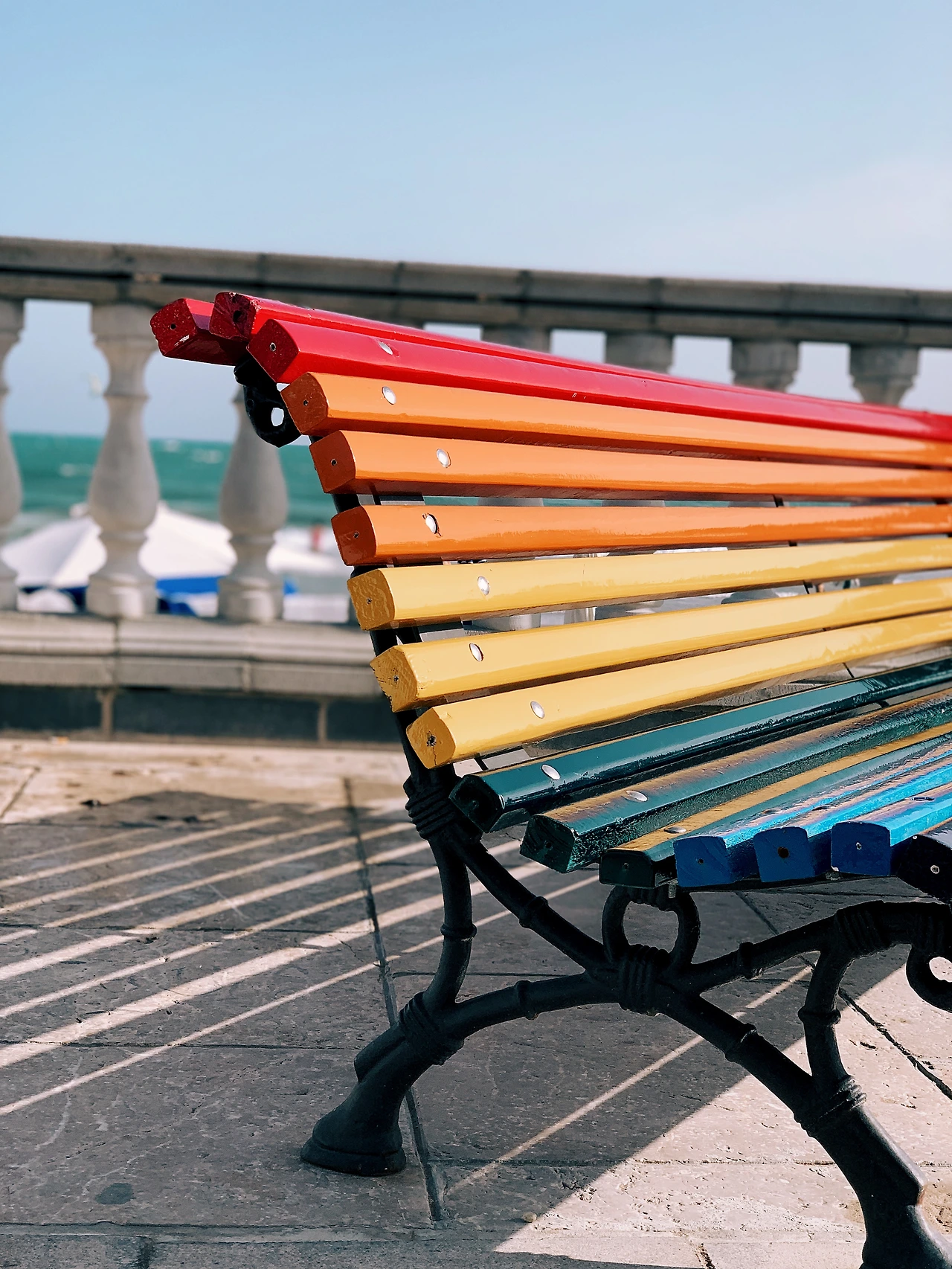 프라이드 깃발 밑 해변의 더할 나위 없이 편안한 낮잠을 자고 있는 그들.