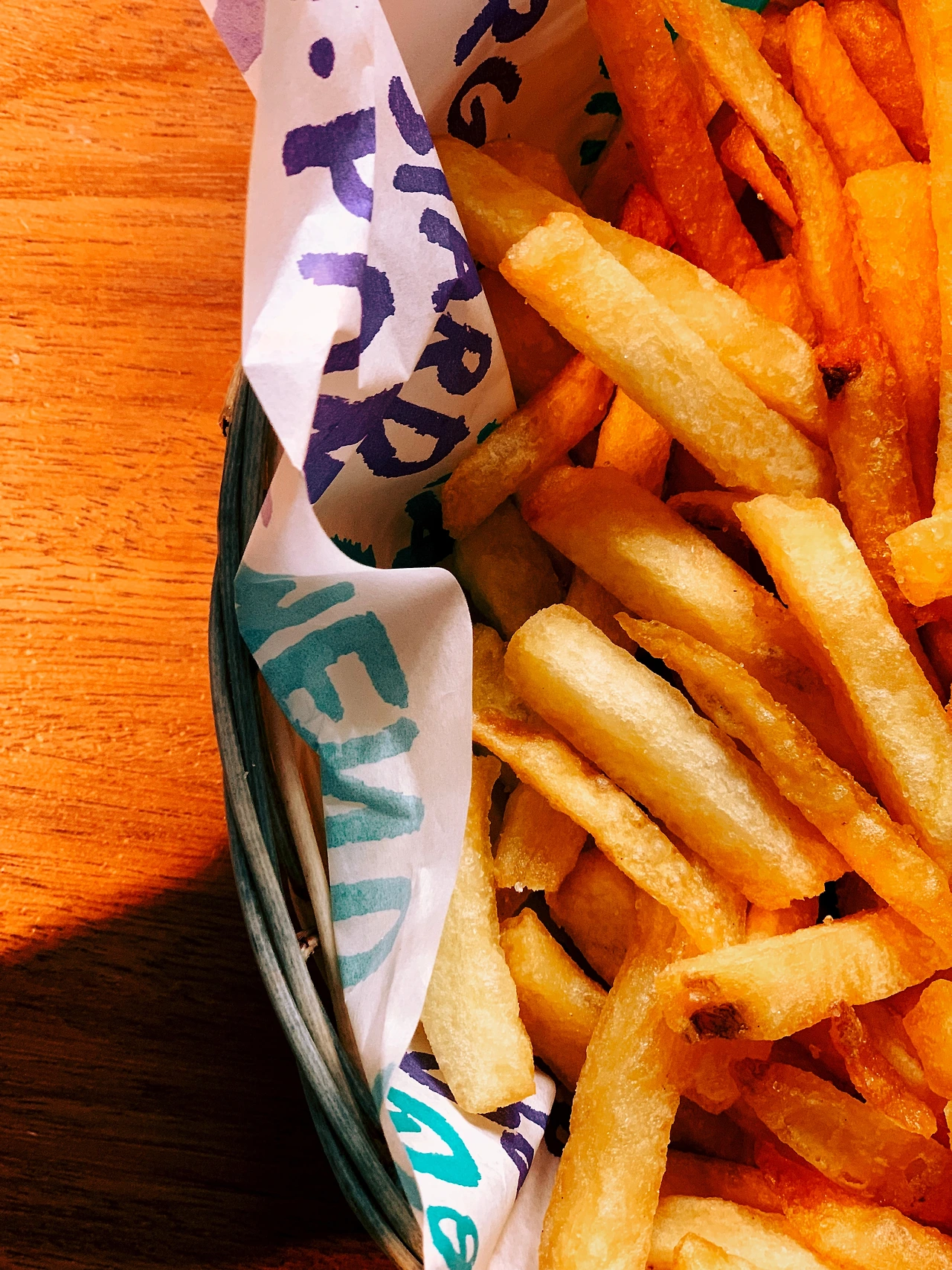 골목을 돌아 돌아 찾아온 어느 작은 수제 햄버거 집의 작은 테이블들.