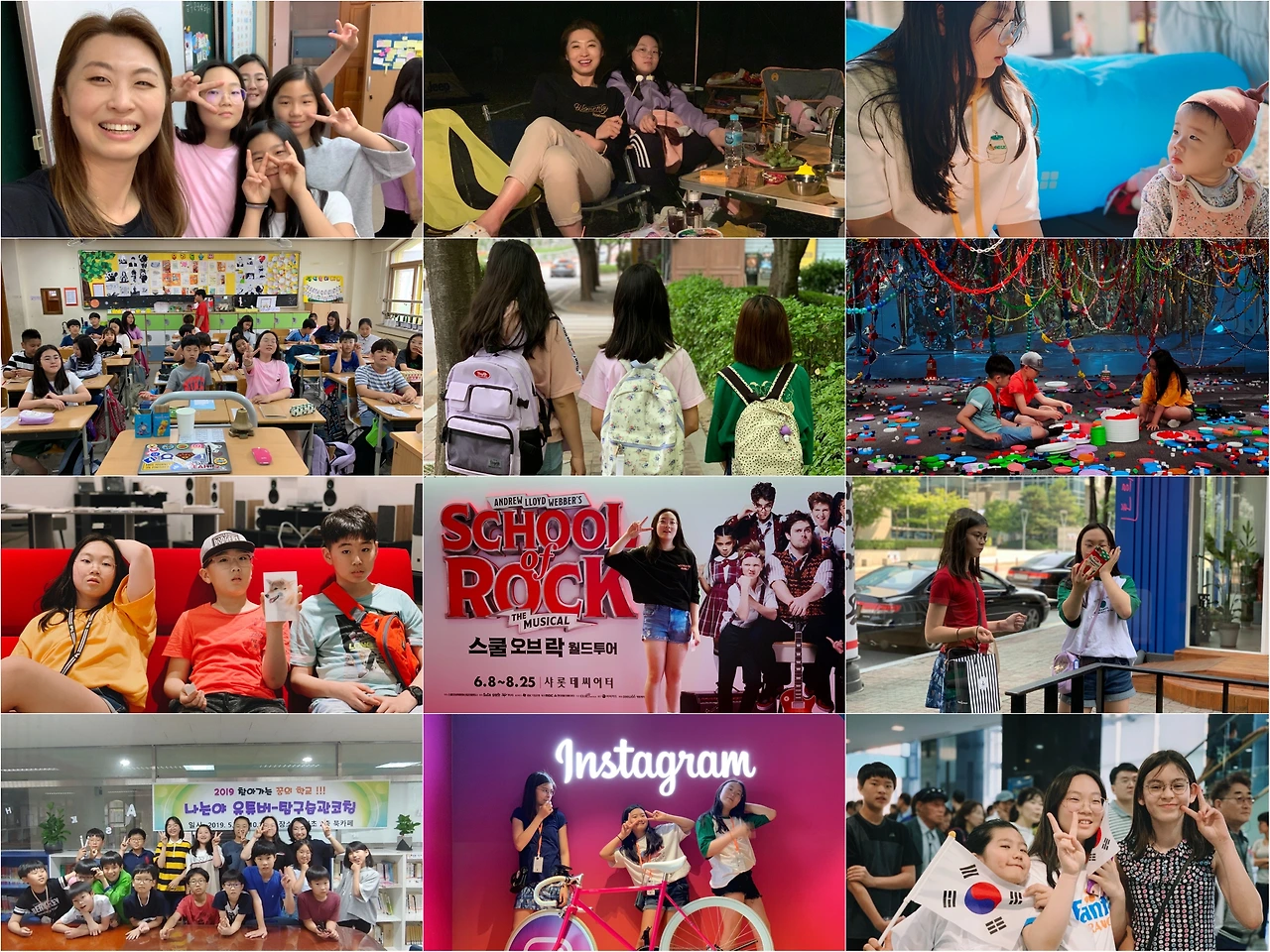 예은이, 예하네랑 로운이네랑 함께 한 캠핑나잇, 엄마의 일일교사 수업. 유튜버 탐구습관 코칭수업. 스쿨오브락 뮤지컬 공연, 친구들과 인스타그램/페이스북 사무실 방문, 성연이의 공연.