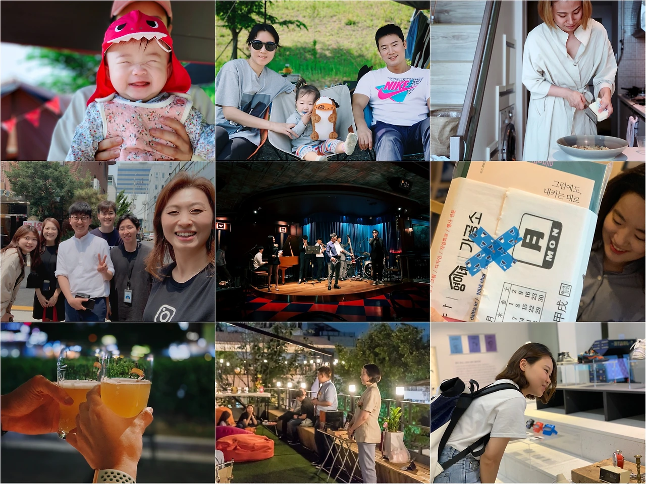 함께 해서 서로에게 더 큰 힘이 되는 가족들. 취향의 데이트. 친구와의 익선동 나들이. 파자마 파티, 친구들을 위한 '나의 이모티콘 제작하기' 수업. 합기도 여정. 그리고 친구와 함께 DDP 전시 보러가기.