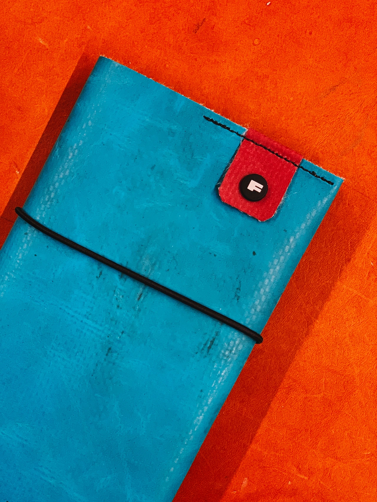 프라이탁의 노트 커버와 뀰의 실제본 무지 노트 : 가방안에 넣어두고 막메모를 거침없이 써야 할 때 꺼내드는 프라이탁 커버의 뀰의 실제본 노트.