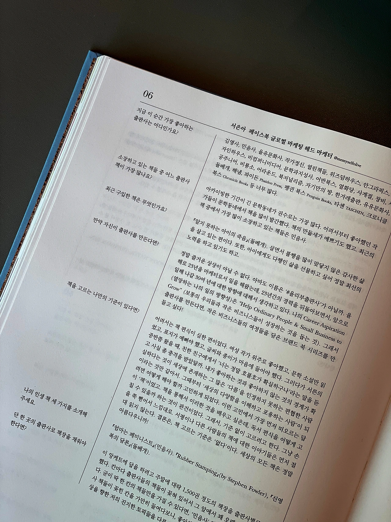 어반라이크 42호 책 만드는 곳, 출판사 - 앙케이트 답변 전문