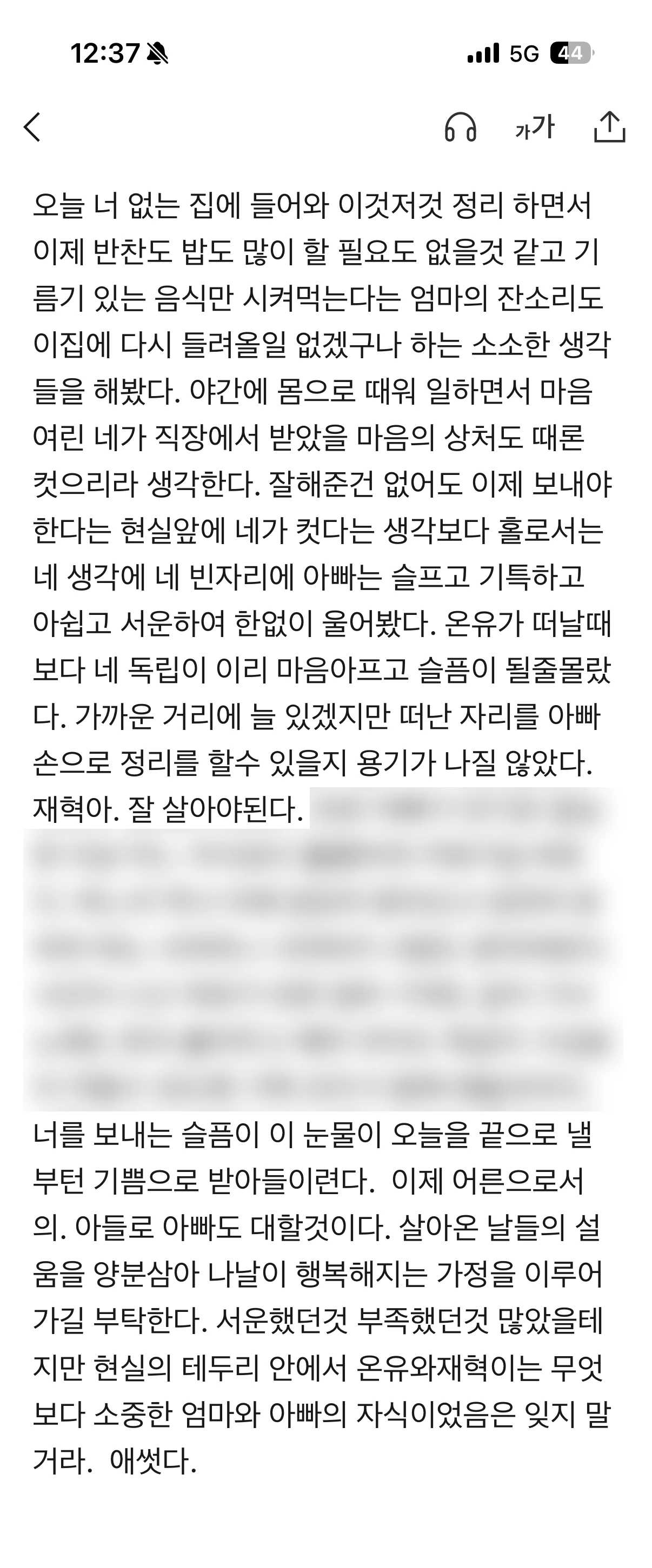 부모님의 마음을 다 헤아릴 순 없겠지만, 그 먹먹함이 내게도 전해져 가슴이 아려왔다.