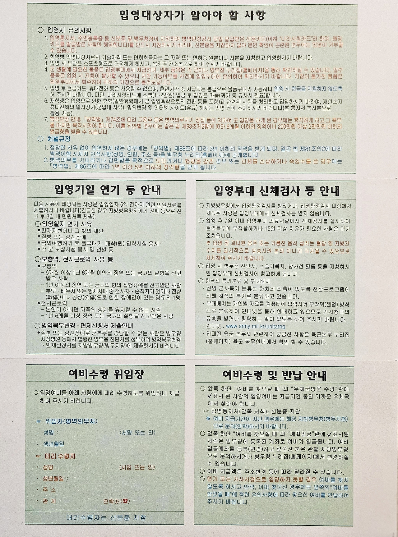 입영대상자가 알아야 할 사항