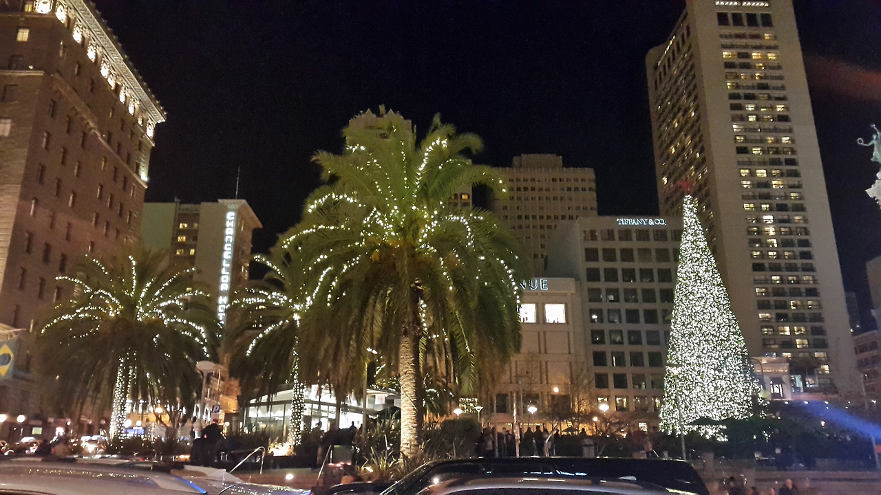 12월의 유니언 스퀘어 광장에는 커다란 크리스마스트리가 우뚝 솟아 있었고 주변 백화점 쇼윈도의
