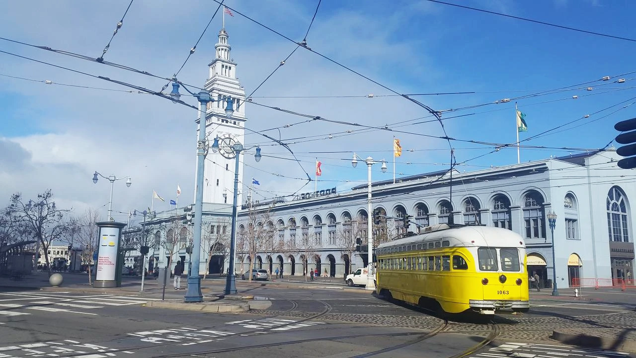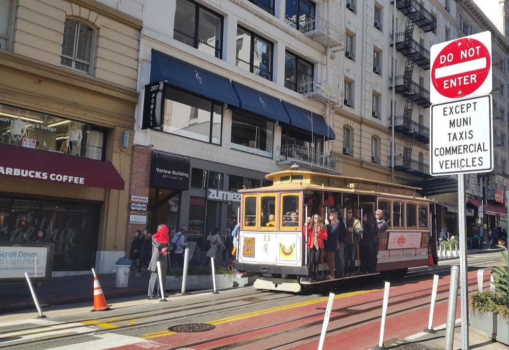 샌프란시스코의 지형상 가파른 언덕길을 타고 내려오는 오픈된 트램은 사람들을 가득 태우고 땡땡