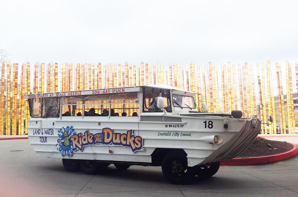 흐린 날도 화창한 날도 시애틀의 항구는 또 다른 낭만이 있다. 목적 없이 해안을 따라 걷다가 시애틀 항구까지 다다랐다. 이윽고 독특한 오리배 버스가 눈에 들어온다. 영화 <만추>에서 탕웨이와 현빈이 애잔한 추억을 만들던 일명 '오리 배 버스 투어'를 놓칠 수 없지 않은가? 육지와 바다를 오가며 달리는 수륙양용 버스 안에서 유쾌한 가이드의 설명을 들으며 시애틀의 풍경이 스쳐간다. 영화 장면에도 나왔었던 이 오리 배 투어의 규칙이 있다. 바로 '오리 배 안에서 있던 일은 오리 배 안에 놓고 가기!' 그렇지만 , 시애틀의 추억이