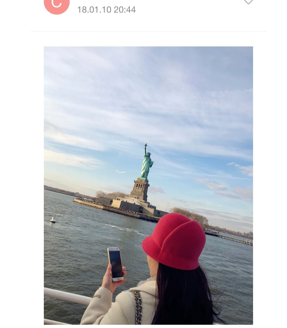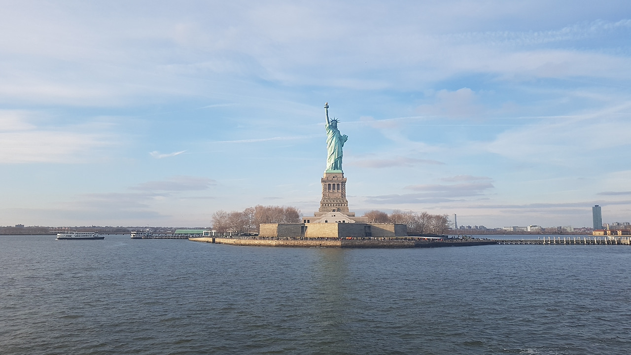 늦은 오후, 허드슨 강을 따라 흐르는 크루즈에 올랐다. 브루클린 브리지를 통과하며 크루즈는 점점 거대한 자유의 여신상 가까이로 흘러갔다. 나는 여지없이 갑판 위에서 카메라 셔터를 누르기 바빴고 내 옆의 한 여인도 그랬다.