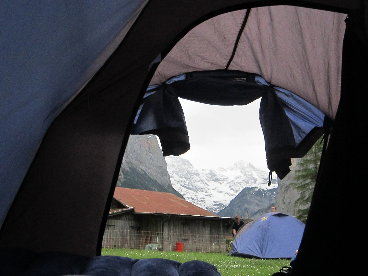 스위스에서 캠핑을 했을 때, 아침에 일어나 텐트를 쳐보니, 내 눈앞에 깎아 내지르는 산과 초원이 정말 말을 타고 달리고 싶은 마음이었다.