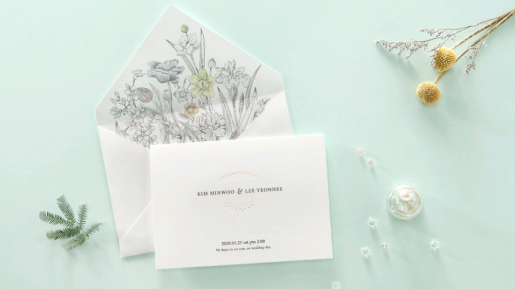 스티커를 떼고 살포시 펼친 하얀 카드. 깊고 높게, 빛나고 굳건히. 그리고 영원히 사랑하겠다는 다짐의 글과, 주인공들의 이름. 그리고 소중히 간직해야 할 그들만의 기념일이 눈에 들어온다.