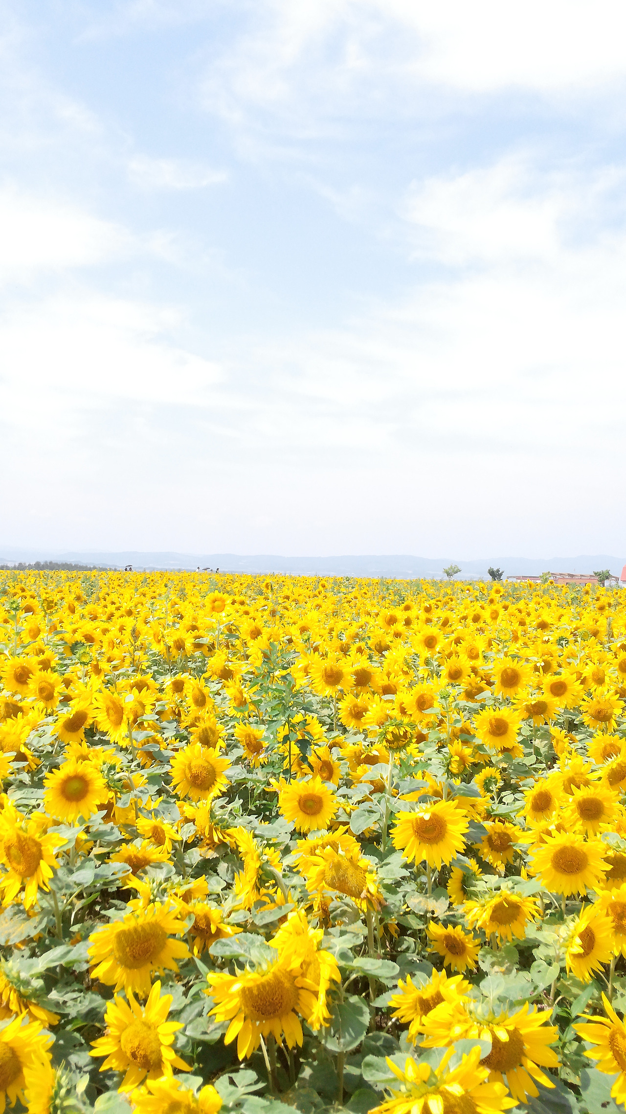 벌판을 가득 메운 해바라기 들은 자신들을 바라보는 이에게 하나의 시선으로 웃어주며 반겨주고 있었다. 따스한 노란빛은 하늘빛과 함께 한 폭의 수채화 같은 그림을 그려 한여름의 더위를 화사하게 해 주었고, 그 덕분에 조금은 덥게했던 열기를 잊을 수 있었다. 그날 나는 해바라기 꽃밭을 쉽게 떠나지 못했다. 달착지근한 과일주를 홀짝홀짝 마시다 나도 모르게 조금씩 취기가 오르듯 나는 점점 노란빛에 취하며 물들여졌기 때문이다.