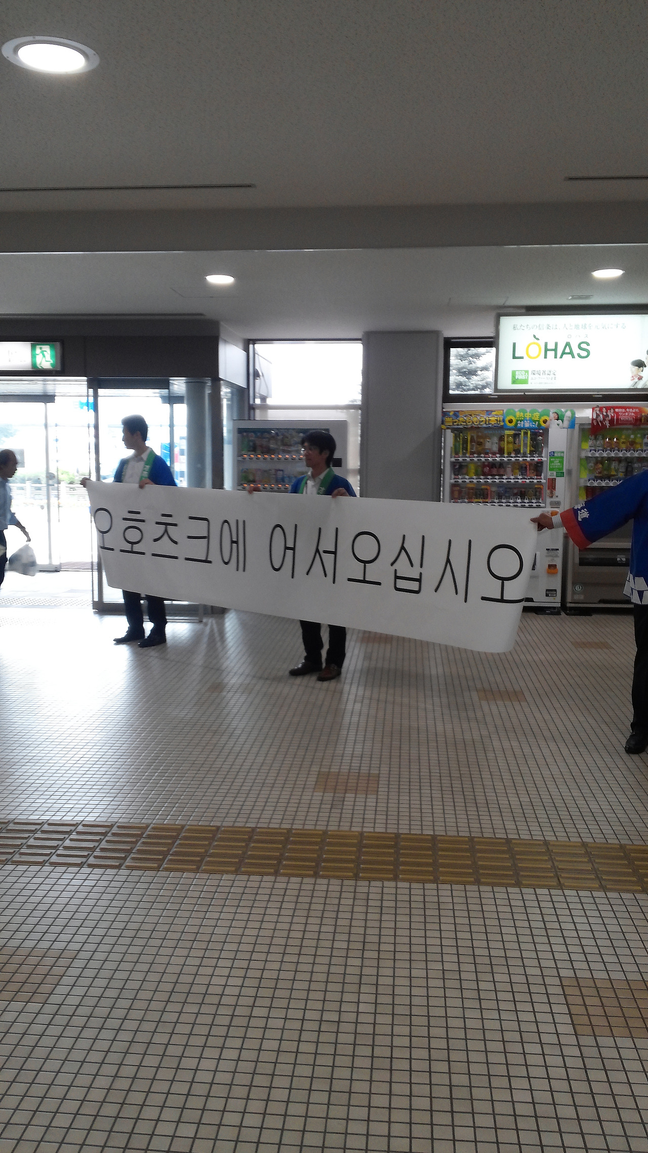 아담한 크기의 공항은 번잡하지 않았고, 오래된 듯했지만 깨끗함이 묻어나 있었다. 입국 심사대에는 우리를 태우고 온 비행기에서 내린 사람들이 전부였다. 심사관들은 무뚝뚝한 다른 나라 사람들과는 달리 밟게 웃으며 친절하게 대해주었고, 그들의 친절에 인사를 하고 밖으로 나오자 한글로 쓰인 커다란 글씨가 눈에 들어왔다.