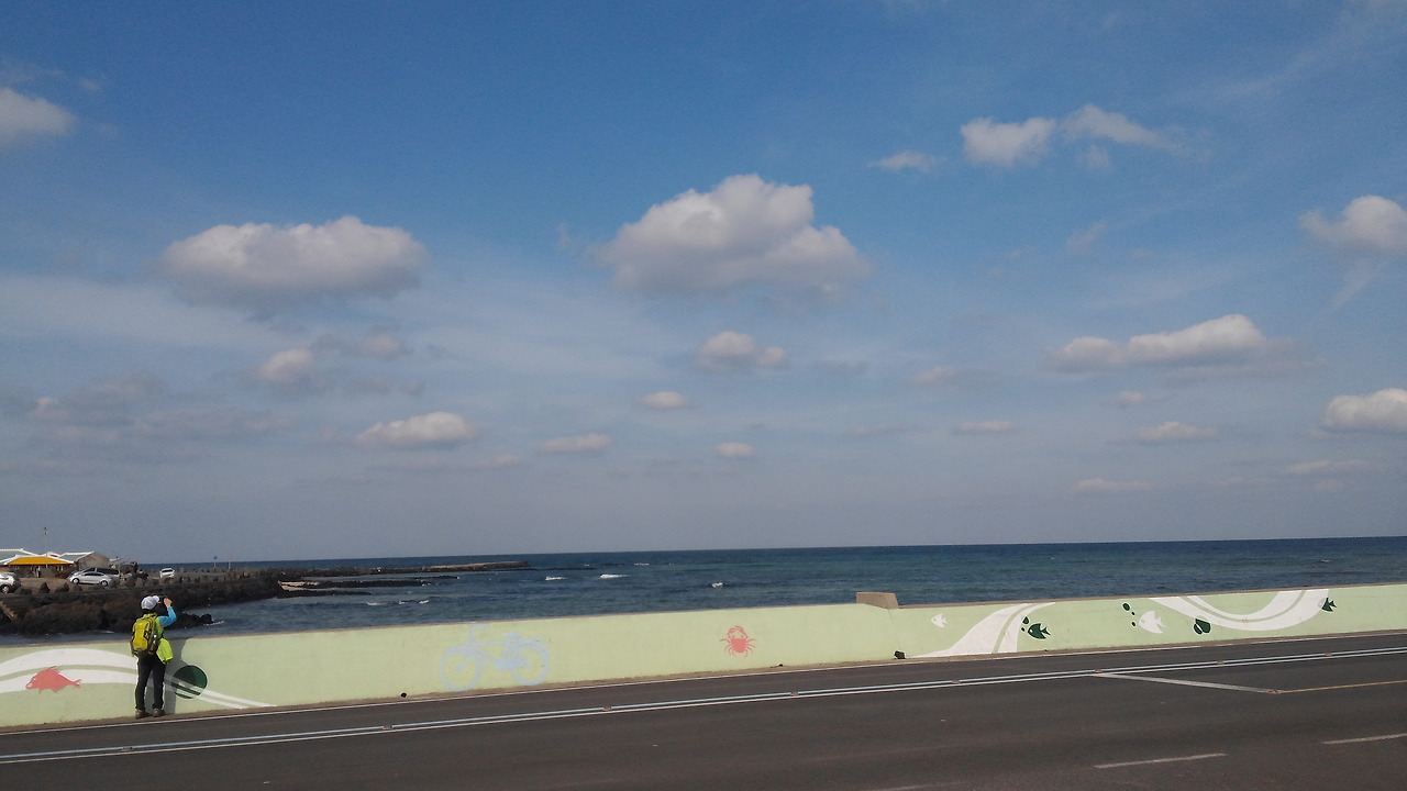 이제 목적지가 얼마 남지 않았나 봅니다. 길을 마친 사람들을 축하해주는 음악 소리가 점점 가깝게 들려옵니다. 여전히 하늘과 바다는 세상을 품고 있습니다. 그 모습을 보니 마음이 허전해지고 발길은 더욱 느려집니다. 하루 온종일 바다와 하늘을 보았지만 처음 보는 풍경처럼 여전히 빛 고운 모습에 눈을 떼지 못합니다. 이제 이 길 끝에서 걸음을 멈추면 언제 다시 이곳을 찾아올지 모르겠습니다. 기약이 없다고 생각하니 슬프기도 하고 조금이라도 더 머물고 싶은 마음뿐입니다. 길을 걸으며 보았던 하늘과 바다, 바람, 그리고 엄마의 마음과 아름다운 청춘. 아마도 많이 그리울 것입니다.