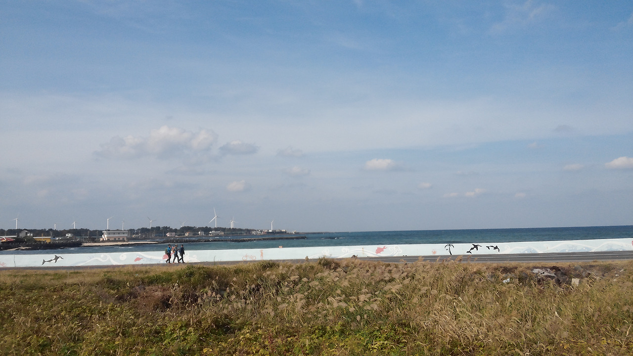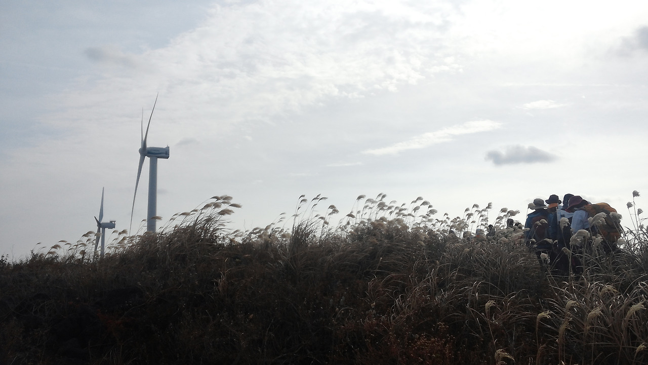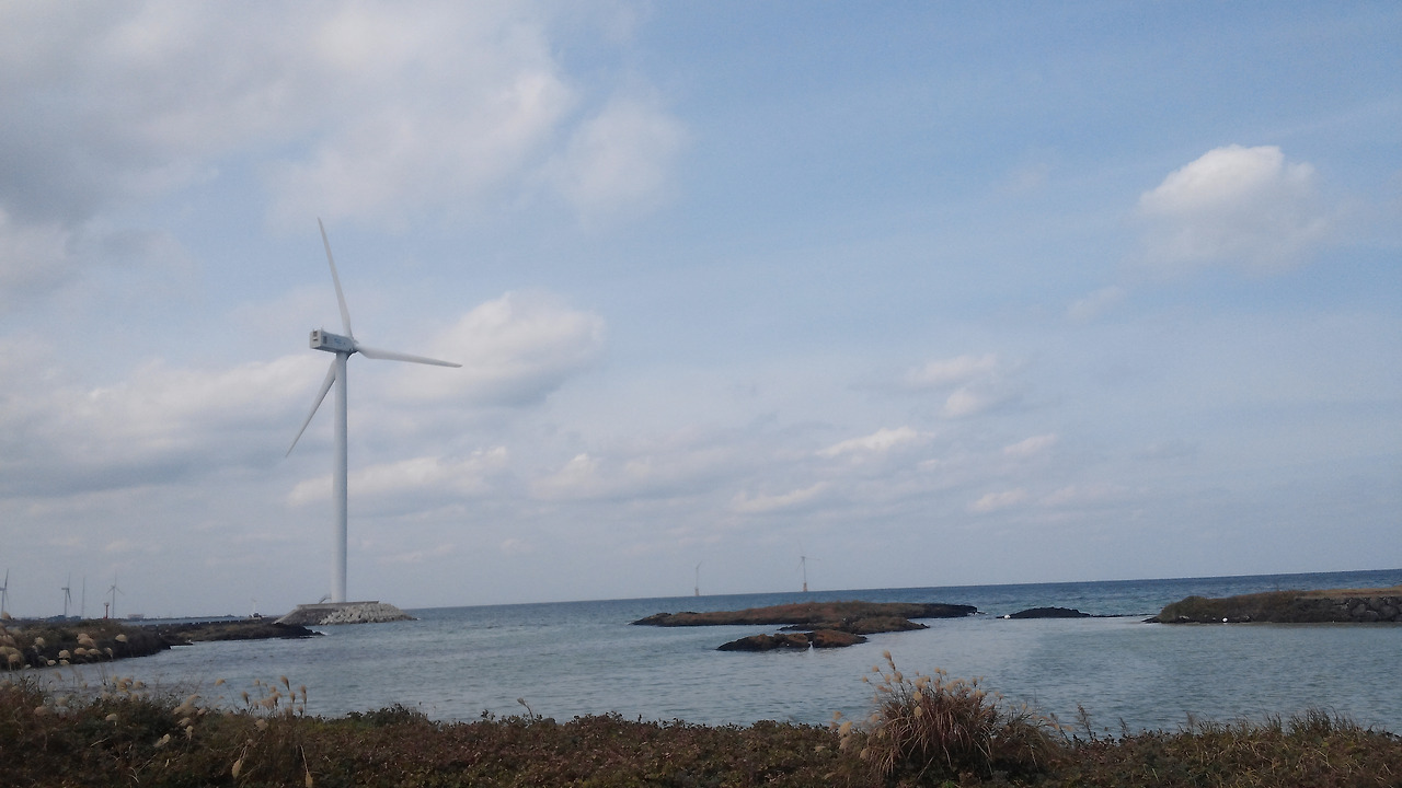 저 멀리 바람개비가 보입니다. 바람을 이용해 커다란 날개를 돌려 에너지를 얻는 기계입니다. 기계에겐 미안하지만 바람개비가 맞는 이름은 아닐 것입니다. 분명 멋진 이름이 있을 겁니다. 하지만 전 바람개비라 부르고 싶습니다. 푸르디푸른 너른 바다와 해와 구름이 있는 하늘 아래에서는 바람개비라 부르는 것이 더 어울릴 것 같아서입니다. 거대한 모습이지만 바람개비라 부르니 비로소 자연과 어우러지는 것 같습니다. 아름다운 자연 앞에선 모든 것이 소박해집니다. 세상의 기술이 발전하여도 그 기술 또한 자연의 한 부분이기 때문입니다. 홀로 웅웅 소리를 내며 돌아가는 바람개비가 외롭게 보였나 봅니다. 곁에서 억새가 친구가 되어 주고 있습니다. 지나가던 구름도 함께 있어 줍니다. 바람개비는 깜깜한 밤이 돼도 외롭지 않을 것입니다. 함께 있어줄 친구가 있으니까요.