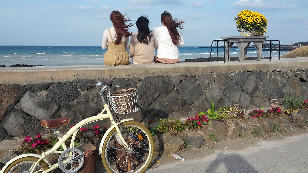 앳된 소녀들이 보입니다. 길을 지나는 저에게 사진을 찍어 달라고 부탁하네요. 이곳에서의 추억을 담으려 벼르고 별러 친구들과 여행을 왔다고 합니다. 그녀들을 보니 저의 청춘과 친구들이 생각납니다. 지나고 나니 후회되고 아쉬움 많은 것이 우리들의 삶이지만 청춘의 기억만은 아름답습니다. 이름보단 별명을 불렀고, 공부보단 놀기를 좋아했으며, 갖고 싶은 것, 하고 싶은 것 많았던 청춘이었습니다. 그리고 그 청춘 속에는 늘 함께 웃고, 때로는 싸우기도 하며 누구도 몰라야 할 비밀을 간직했던 친구들이 있습니다. 그리고 세월은 흘러 우리들의 비밀은 추억의 에피소드가 되고, 그 이야기 속 주인공들은 아빠가 되고 엄마가 되어버렸습니다. 아제는 그때의 우리 같은 아이들을 키우며 살아가고 있습니다. 그녀들의 모습을 사진에 담습니다. 나란히 앉은 그녀들의 모습도 이뻤지만 함께 있는 저 모습, 저 너머의 바다처럼 푸르른 청춘의 마음이 더 이뻤습니다. 그녀들의 청춘이 부럽기도 하고 지나가버린 저의 청춘도 그립습니다. 그들끼리 속삭이며 행복한 모습으로 까르르 웃는 그녀들을 보며 생각합니다. 어느 노랫말처럼 언젠가는 가버릴 청춘이지만, 세월이 지날수록 가장 생각나고 그리운 푸르른 시절이기에 청춘은 아름답고 고귀한 것이라고요. 그녀들은 가장 화려하고 아름다운 청춘의 날을 지내고 있습니다. 그녀들 곁에 활짝 피어 있는 저 노란 꽃처럼 말입니다.