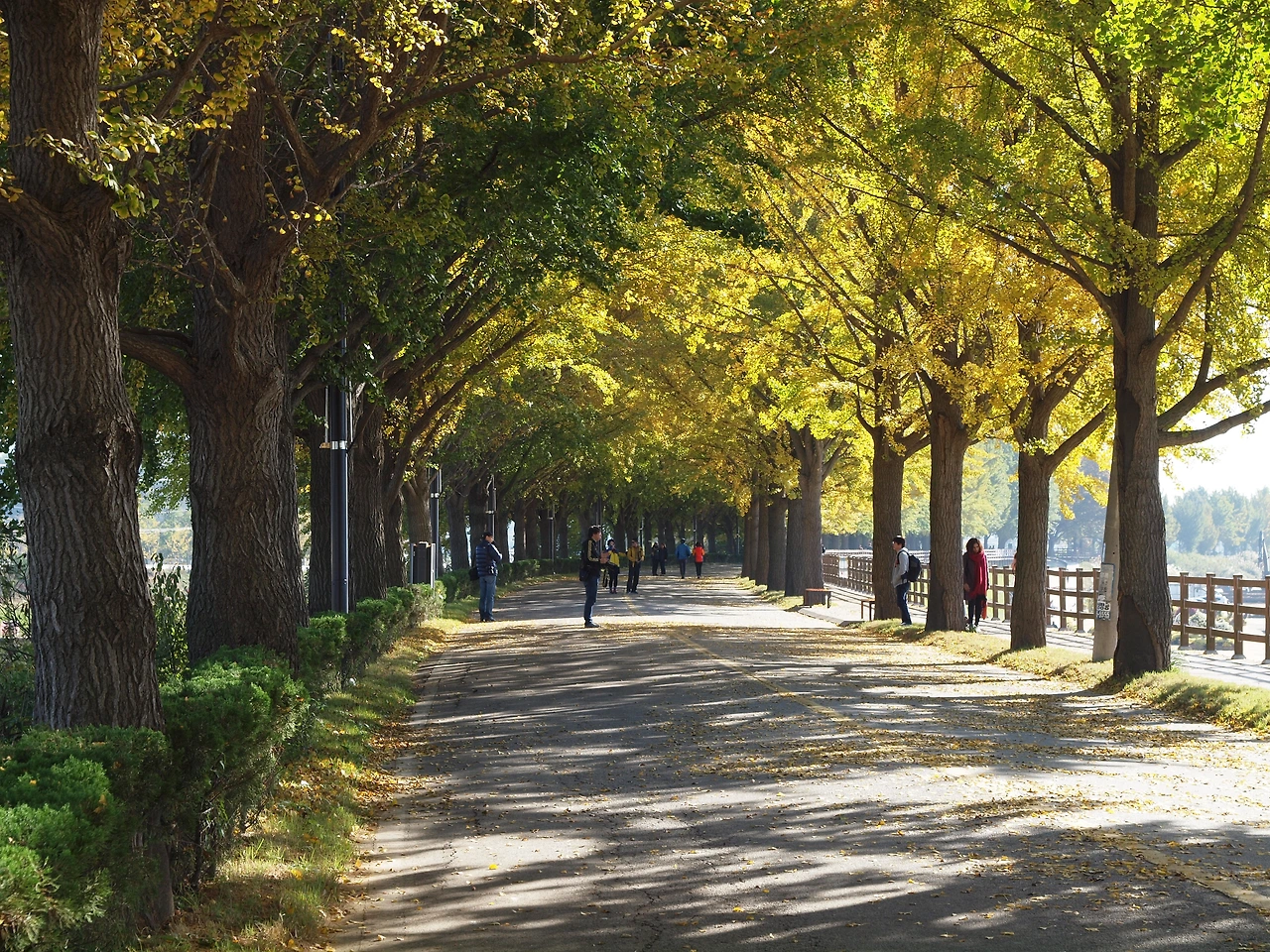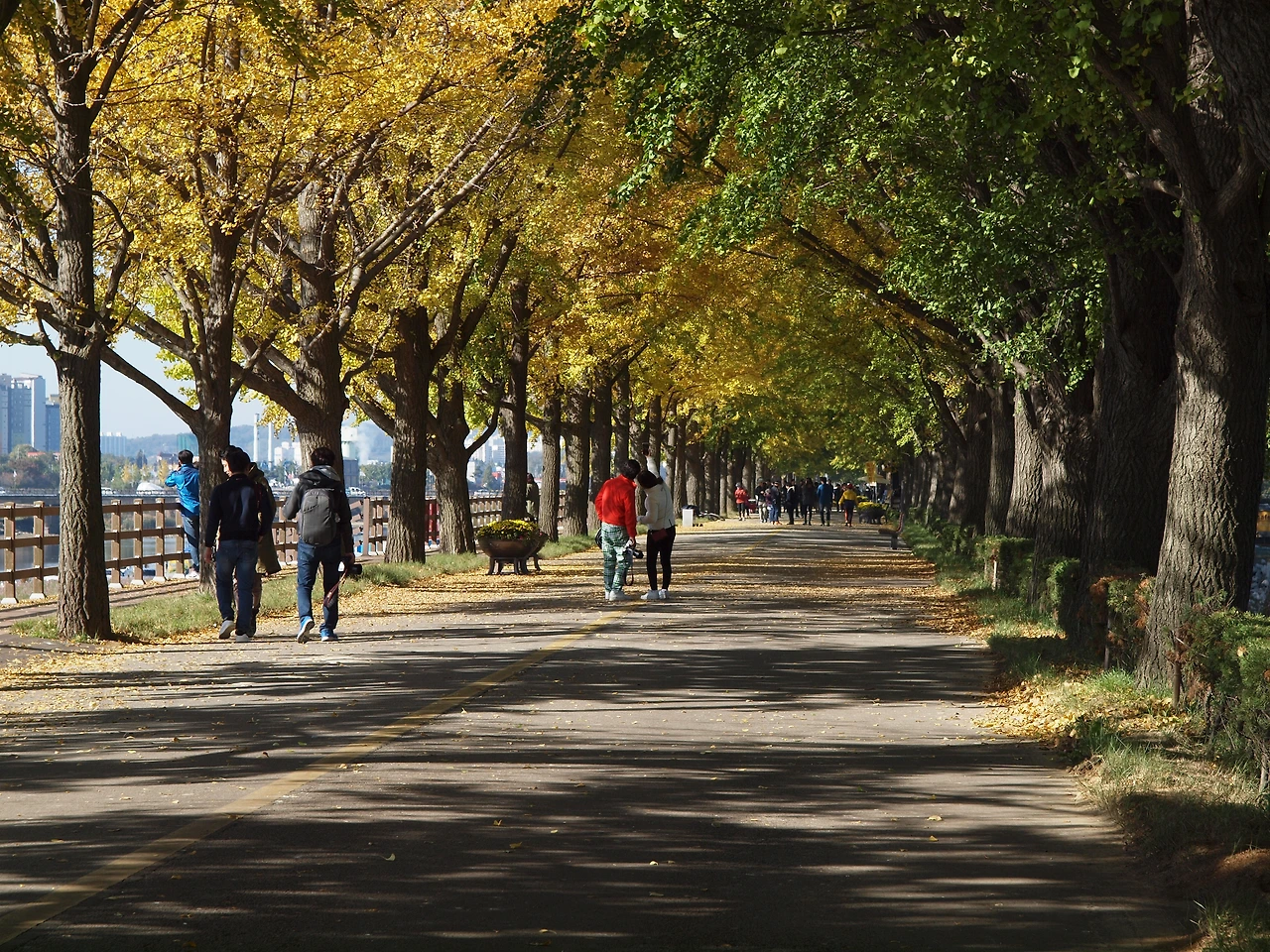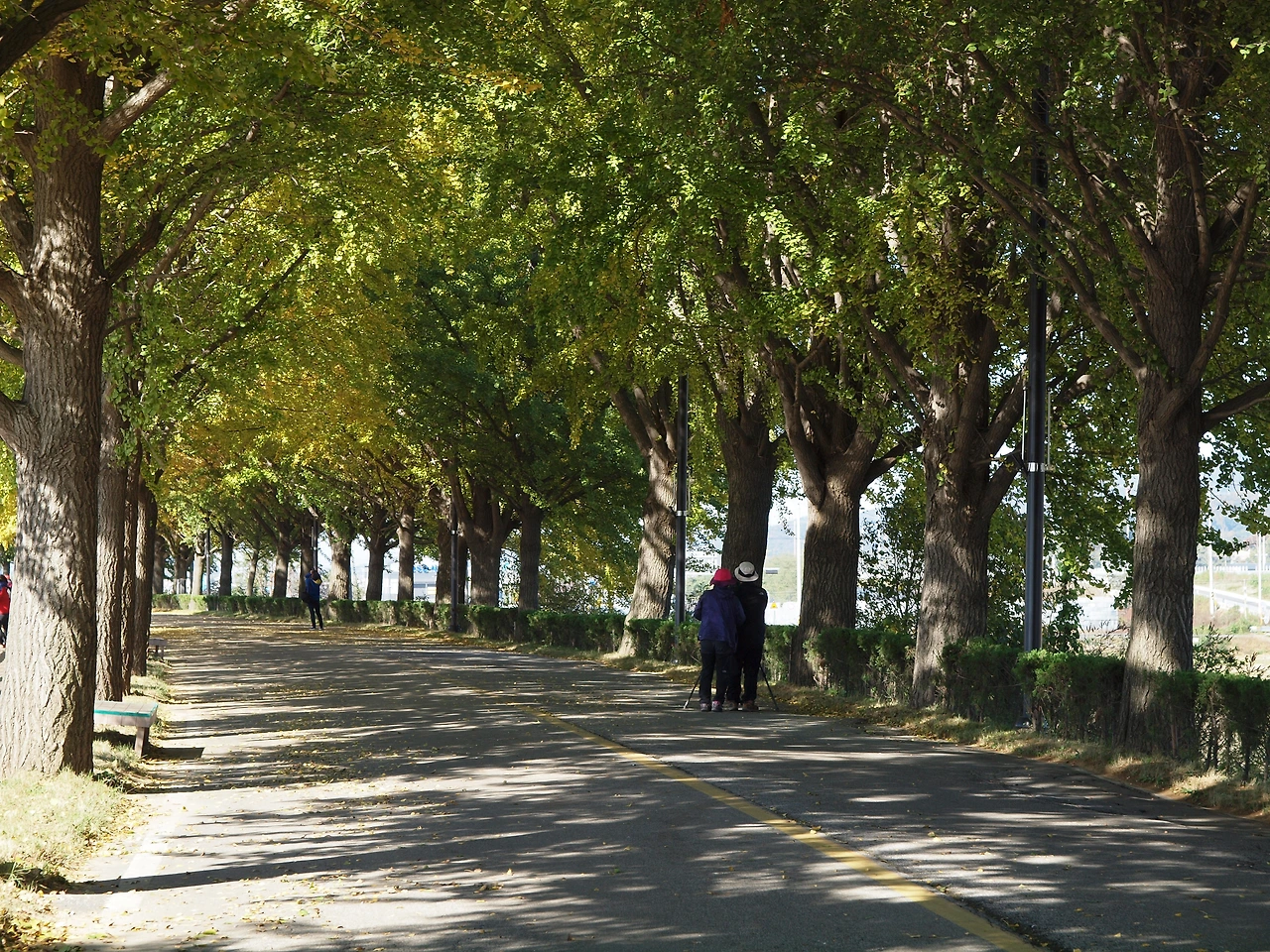 차가왔던 아침 공기는 시간이 지날수록 점점 더 따뜻해지고 있습니다. 노란 터널에는 이전보다 더 많은 사람들이 길을 걷고 있습니다. 사람들은 여전히 여유롭습니다. 햇살이 따스했던 이 킬로 남짓한 은행나무 길 위에선 사람들의 다양한 삶을 볼 수 있었습니다. 그들과 직접 얘기해 본 것은 아니었지만 사람들은 아름다운 길을 걸으며 여유와 함께 복잡하고 힘들었던 삶의 무게를 잠시나마 내려놓는 듯 보였습니다. 그것은 누구나 받을 수 있는 가을의 공평한 선물이었고, 사람들은 그것에 감사하며 길을 걷습니다. 그렇게 그들은 이 가을 또 하나의 추억을 만들고 있었습니다.